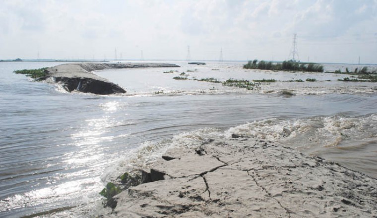 নানা অনিয়ম ও দুর্নীতির মাধ্যমে ড্রেজারের বালু দিয়ে তৈরি সিরাজগঞ্জ জেলার শাহজাদপুর উপজেলার পোতাজিয়া ইউনিয়নের রাউতারা স্লুইস গেট সংলগ্ন ১ হাজার ২৫০ মিটার রিং বাঁধ ভেঙ্গে ৫ জেলার বিস্তীর্ণ এলাকা প্লাবিত হয়েছে। মঙ্গলবার দুপুরে বন্যার পানির চাপে এটি ভেঙ্গে গেছে। এতে শাহজাদপুর উপজেলাসহ চলনবিল অঞ্চলের পাবনা, সিরাজগঞ্জ, নাটোর, নওগাঁ ও বগুড়া জেলার শাহজাদপুর, উল্লাপাড়া, তাড়াশ, রায়গঞ্জ, ভাঙ্গুড়া, ফরিদপুর, চাটমোহর, সিংড়া, গুরুদাসপুর, বড়াইগ্রাম, শেরপুর, নন্দিগ্রাম, রানীনগর ও আত্রাই উপজেলার বিস্তীর্ণ এলাকা বন্যার পানিতে ডুবে গেছে। এতে তেমন ফসলহানি না হলেও শুকনো খড়, সবজি ক্ষেত ও বিস্তীর্ণ গো-চারণ ভূমি আগাম বন্যার ডুবে ব্যাপক ক্ষতি হয়েছে। গত ২০ বছর ধরে প্রতি বছরই ফসল রক্ষার নামে এই বালুর বাঁধ নির্মাণ করা হয়। প্রথম দিকে এর ব্যয় ৯৯ লাখ টাকা হলেও গত কয়েক বছর ধরে এ ব্যয় বেড়ে প্রায় দেড় কোটি টাকায় দাঁড়িয়েছে। এতে সরকারের কোটি কোটি টাকার হরিলুট হচ্ছে বলে স্থানীয়রা অভিযোগ করেছেন। সিরাজগঞ্জ পানি উন্নয়ন বোর্ডের নির্বাহী প্রকৌশলী শফিকুল ইসলাম স্থানীয়দের এ অভিযোগ অস্বীকার করে বলেন, এ কাজে কোনো অনিয়ম-দুর্নীতি হয়নি। সিডিউল অনুযায়ী কাজ হয়েছে। শাহজাদপুরসহ চলনবিল অঞ্চলের ফসল রক্ষার্থে গত ২০ বছর ধরে অস্থায়ীভাবে এ বাঁধটি নির্মাণ করা হয়ে থাকে। এ বছরও করা হয়েছে। এ বাঁধের মেয়াদকাল ধরা হয়েছিল ৩১ মে পর্যন্ত। এ অঞ্চলের জমি থেকে সব ধান কাটা শেষ হয়ে গেছে। ফলে বাঁধটি ভেঙ্গে গেলেও কৃষকের কোনো ক্ষতি হয়নি। এ বিষয়ে শাহজাদপুর উপজেলা কৃষি অফিসার আবদুস সালাম বলেন, এ বছর বাঁধটির নির্মাণকাজ অনেক দুর্বল হলেও আগে থেকে ব্যবস্থা নেয়ায় বড় ধরনের ফসলহানি হয়নি। মঙ্গলবার দুপুরে সরেজমিন রাউতারা স্লুইসগেট সংলগ্ন রিং বাঁধ এলাকায় গিয়ে দেখা যায়, আশপাশের লোকজন ভেঙ্গে যাওয়া বাঁধের বাঁশ খুঁটি যে যার মতো তুলে নিয়ে যাচ্ছে। বাঁধের ৩টি পয়েন্ট দিয়ে হু হু করে বন্যার পানি বাঁধের অভ্যন্তরে প্রবেশ করছে। আগাম এ বন্যার পানিতে অধিকাংশ নিচু জমি, কাঁচা রাস্তাঘাট ও নিচু বাড়িঘর ডুবে গেছে। তথ্যসূত্রঃ যুগান্তর