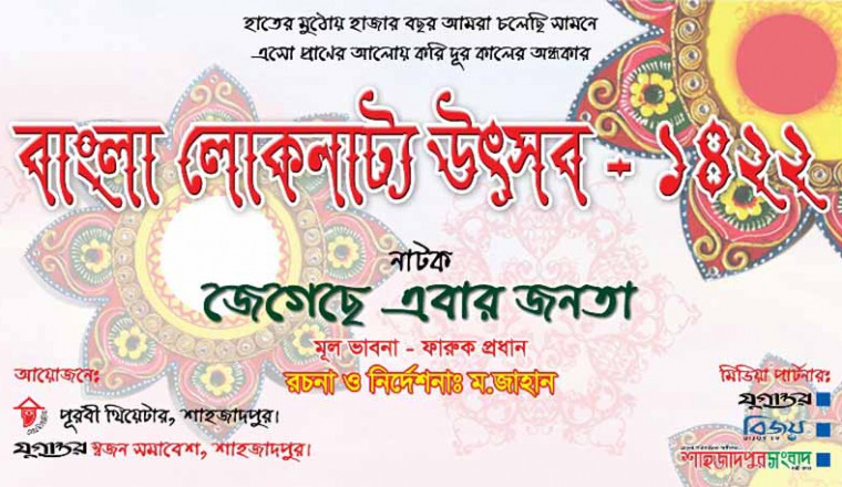 ডেস্ক রিপোর্টঃ হাতের মুঠোয় হাজার বছর, আমরা চলেছি সামনে, এসো প্রাণের আলোয় করি দূর কালের অন্ধকার এই শ্লোগান নিয়ে আজ শুক্রবার বিকেলে যুগান্তর স্বজন সমাবেশ ও পূরবী থিয়েটারের আয়োজনে ‘বাংলা লোকনাট্য উৎসব’ অনুষ্ঠিত হচ্ছে। এ উৎসবে থাকছে আলোচনা, জারি গান, বাউল গান, ধুয়া গান, শ্রীরূপ খ্যাপার গান, দেশের গান, কবিতা আবৃত্তি, কৌতুক, লোকনৃত্য ও ফারুক প্রধানের ভাবনায়, ম.জাহান রচিত ও নির্দেশিত নাটক ‘জেগেছে এবার জনতা’। শাহজাদপুর হাইস্কুল শহীদ মিনার চত্তরে অনুষ্ঠিত এ উৎসবে প্রধান অতিথি হিসেবে উপস্থিত থেকে অনুষ্ঠানের উদ্বোধন করবেন শাহজাদপুর উপজেলা নির্বাহী অফিসার শামীম আহমেদ। আলহাজ্ব নজরুল ইসলামের সভাপতিত্বে অনুষ্ঠিত আলোচনা সভায় বিশেষ অতিথি হিসেবে উপস্থিত থাকবেন, বিশিষ্ট শিক্ষাবিদ প্রফেসর নাছিমউদ্দিন মালিথা, শাহজাদপুর থানার অফিসার ইনচার্জ রেজাউল হক, ইন্সপেক্টর (তদন্ত) মনিরুল ইসলাম, সহযোগী অধ্যাপক মাহবুবুর রহমান মিলন, প্রধান শিক্ষক এস,এম সাইফুল ইসলাম, সাংবাদিক আতিক সিদ্দিকী, নাট্য ব্যাক্তিত্ব কাজী শওকত, ম.জাহান। জারি গান পরিবেশন করবেন, খোরশেদ আলম বয়াতী, বাউল গান পরিবেশন করবেন, সুর ঝংকার বাউল শিল্পী বৃন্দ, ধুয়া গান পরিবেশন করবেন, আব্দুল মতিন, শ্রীরূপ খ্যাপার গান পরিবেশন করবেন, সধীর সরকার, সুনীল সরকার, মাধব সরকার, অষ্টলাল সরকার, আবৃত্তি করবেন, যুগান্তর স্বজন সমাবেশ শাহজাদপুর উপজেলা শাখা ও সরকারী কলেজ শাখা। কৌতুক ও লোকনৃত্য পরিবেশন করবেন, স্থানীয় শিল্পীরা। মঙ্গল প্রদীপ প্রজ্জলন করে এ লোকনাট্য উৎসবের উদ্বোধন করা হবে।