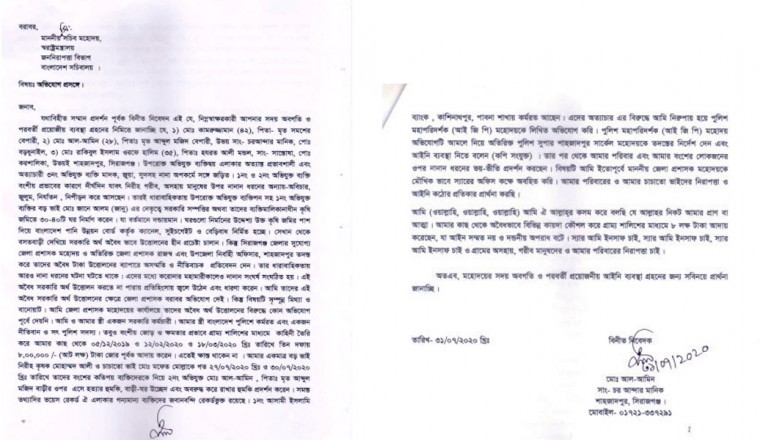 সিরাজগঞ্জ জেলার শাহজাপুর উপজেলার রূপবাটি ইউনিয়নের প্রত্যন্ত এলাকা চরআন্দার মানিক গ্রামে এক সরকারি চাকরিজীবীকে ফাঁসিয়ে প্রধানবর্গ কর্তৃক গ্রাম্য সালিশের মাধ্যমে ৩ দফায় বেআইনীভাবে ৮ লাখ টাকা আদায় ও আত্মসাতের ঘটনায় পুলিশের আইজিপি বরাবর অভিযোগ করায় বাদী ও তার পরিবারের সদস্যদের হত্যার হুমকি দিয়েছে প্রতিপক্ষ। এ ঘটনায় চরম উদ্বেগ ও উৎকন্ঠা প্রকাশ করে বাদী কিশোরগঞ্জ জেলা পরিষদের উপ-সহকারী প্রকৌশলী/সার্ভেয়ার পদে কর্মরত শাহজাদপুর উপজেলার রূপবাটি ইউনিয়নের চরআন্দার মানিক গ্রামের মোঃ আল আমিন শুক্রবার (৩১ জুলাই) নিজের ও পরিবারের সদস্যদের জীবনের নিরাপত্বা চেয়ে ও গ্রাম্য সালিশের মাধ্যমে বেআইনীভাবে ৮ লাখ টাকা আত্মসাতের ঘটনার প্রতিকার দাবী করে স্বরাষ্ট্র মন্ত্রনালয়ের জননিরাপত্বা বিভাগের সচিব বরাবর একটি লিখিভ অভিযোগ করেছেন। এদিন (শুক্রবার) স্বরাষ্ট্র সচিব বরাবর প্রেরণকৃত ওই অভিযোগ সুত্রে প্রকাশ, উপজেলার রূপবাটি ইউনিয়নের দুর্গম এলাকা চরআন্দার মানিক গ্রামের মোঃ আল আমিন নামের এক সরকারি চাকরিজীবীকে গ্রাম্য সালিশে ফাঁসিয়ে বেআইনীভাবে ৩ দফায় ৮ লাখ টাকা জরিমানা আদায়ের ঘটনায় ভুক্তভোগী মোঃ আল আমিন গত ৮ জুলাই বাদী হয়ে একই গ্রামের মৃত সমশের বেপারীর ছেলে গ্রাম প্রধান মোঃ কামরুজ্জামান, মৃত আব্দুল মজিদ বেপারীর ছেলে মোঃ আল আমিন ও সন্তোষা গ্রামের হযরত আলী মন্ডলের ছেলে মোঃ রাকিবুল ইসলাম ওরফে হালিম এ ৩ জনকে বিবাদী করে পুলিশ মহাপরিদর্শক (আইজিপি) বরাবর একটি লিখিত অভিযোগ (ডাইরি নং-৪৫৬, তারিখঃ ০৮/০৭/২০২০ খ্রিষ্টাব্দ) করলে ঘটনার তদন্তে নামে পুলিশ। আইজিপি বরাবর অভিযোগ দেয়ার খবর জানতে পেরে গত সোমবার (২৭ জুলাই) ও গতকাল বৃহস্পতিবার (৩০ জুলাই) ২নং বিবাদী মৃত আব্দুল মজিদ বেপারীর ছেলে মোঃ আল আমিনের নেতৃত্বে প্রতিপক্ষের দল বাদীর বড় ভাই মোহাম্মদ আলী ও চাচাতো ভাই মোঃ মফেত মোল্লার বাড়িতে গিয়ে নানাভাবে ভয়ভীতি প্রদর্শন করে ও হত্যার হুমকি দেয়। এ সময় বাদী মোঃ আল আমিন ও তার পরিবারের সদস্যদের বাড়ি-ঘর থেকে উচ্ছেদ ও অবরুদ্ধ করে রাখারও হুমকি দেয় প্রতিপক্ষ। এ ঘটনায় এদিন শুক্রবার বাদী মোঃ আল আমিন নিজের ও পরিবারের সদস্যদের জীবনের নিরাপত্তা ও আইনী প্রতিকার চেয়ে স্বরাষ্ট্র মন্ত্রনালয়ের সচিব বরাবর চরআন্দার মানিক গ্রামের মৃত সমশের বেপারীর ছেলে মোঃ কামরুজ্জামান, মৃত আব্দুল মজিদ বেপারীর ছেলে মোঃ আল আমিন ও সন্তোষা গ্রামের হযরত আলী মন্ডলের ছেলে মোঃ রাকিবুল ইসলাম ওরফে হালিম ওই একই ৩ জনকে বিবাদী করে অপর একটি অভিযোগ প্রেরণ করেন এবং প্রশাসনের উর্ধতন কর্তৃপক্ষের আশু হস্তক্ষেপ কামনা করেন।