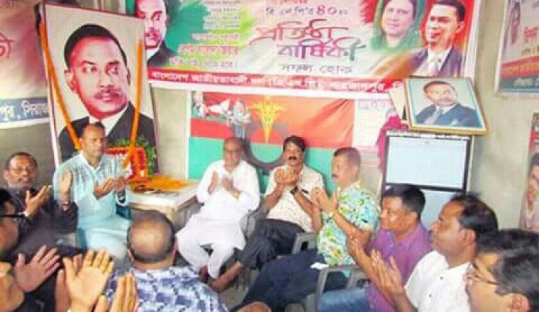 শাহজাদপুর সংবাদ ডটকম, নিজস্ব প্রতিবেদক, রোববার, ২ সেপ্টেম্বর ২০১৮ খ্রিস্টাব্দ :  ১লা সেপ্টেম্বর শনিবার বাংলাদেশ জাতীয়তাবাদী দল বিএনপি’র ৪০তম প্রতিষ্ঠা বার্ষিকী উপলক্ষে শাহজাদপুর উপজেলা ও পৌর বিএনপি’র পক্ষ থেকে বিভিন্ন কর্মসূচি পালিত হয়েছে। কর্মসূচির মধ্যে ছিল সকাল ৭:১ মিনিটে দলীয় কার্যালয়ে জাতীয় ও দলীয় পতাকা উত্তোলন। সকাল ৮:১ মিনিটে বাংলাদেশ জাতীয়বাদী দল বিএনপি’র প্রতিষ্ঠাতা সাবেক রাষ্ট্রপতি শহিদ জিয়াউর রহমানের প্রতিকৃতিতে পুষ্পমাল্য অর্পণ। দুপুর সাড়ে ১২ টায় উপজেলা বিএনপি’র দলীয় কার্যালয়ে উপজেলা বিএনপি’র সিনিয়র সহ-সভাপতি সাবেক পৌর মেয়র মোঃ নজরুল ইসলামের সভাপতিত্বে মিলাদ মাহফিল ও আলোচনা সভা অনুষ্ঠিত হয়। এ সময় অন্যান্যের মধ্যে উপস্থিত ছিলেন, বিএনপি’র কেন্দ্রীয় নির্বাহী কমিটির সদস্য, সাবেক সাংসদ কামরুদ্দিন এহিয়া খান মজলিশ সরোয়ার, উপজেলা বিএনপি’র যুগ্ম-সাধারণ সম্পাদক আরিফুজ্জামান আরিফ, পৌর বিএনপি’র সাধারণ সম্পাদক কেএম হাবিবুল হক সাব্বির, উপজেলা বিএনপি’র সাংগঠনিক সম্পাদক রেজাউল ইসলাম রাজা, বিএনপি নেতা এ্যাডভোকেট রায়হান উদ্দিন, আল মাহমুদ প্রামানিক, উপজেলা যুবদলের সভাপতি ফিরোজ হাসান খান ফাইট, সাধারণ সম্পাদক মিজানুর রহমান মিন্টু, সাংগঠনিক সম্পাদক আরিফ প্রামানিক, পৌর যুবদলের সভাপতি আব্দুল্লাহ আল মাহমুদ, সাধারণ সম্পাদক জাহিদুল ইসলাম জাহিদ, সাংগঠনিক সম্পাদক মোঃ আলাল হোসেন, যুবনেতা সবুজ প্রামানিক, শাকিক চৌধুরী, রওশন আলী রোশনাই, আব্দুস সোবাহান, মাসুম, ছাত্রদল নেতা রবিউল ইসলাম, বকতিয়ার ভূঁইয়া, নাদিম শেখ, মনিরুল ইসলাম, সেতু, সুলতান মাহমুদ প্রমুখ।