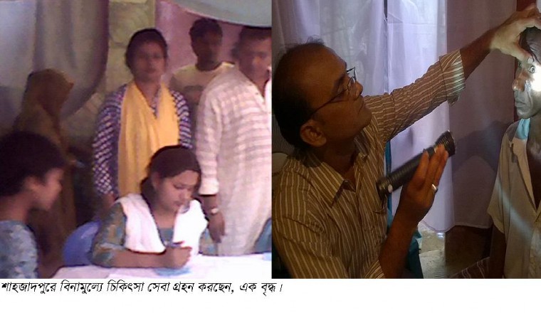 4 শাহজাদপুর সংবাদ ডটকমঃ  শুক্রবার থেকে এলাকার চক্ষু রোগিদের বিনামুল্যে চিকিৎসা সেবা প্রদান শুরু হয়েছে॥ প্রতি শুক্রবারে চিকিৎসা সেবা কার্যক্রম অব্যাহত থাকবে। শাহজাদপুর উপজেলা নির্বাহী অফিসার শামিম আহমেদ এ চিকিৎসা সেবা কার্যক্রমের আনুষ্ঠানিক উদ্বোধন করেছেন। জানা গেছে, সমাজ সেবক অরুপ গজনবী তার পিতার জন্মভূমি উপজেলার রতন কান্দি গ্রামে তার বাবার নামে নামকরন করে মোহাম্মদ আলী স্বাস্থ্য কমপ্লেক্সে নামে সম্প্রতি একটি হাসপাতালের ভিত্তি প্রস্থর স্থাপন করেছেন। সকাল ১১ টা পর্যন্ত প্রায় আড়াইশ মানুষ চক্ষু চিকিৎসা সেবা গ্রহন করছে বলে জানা যায়। এ সম্পর্কে অরূপ গজনবী জানান, তার বাবা চক্ষু সমস্যায় জর্জরিত ছিলেন। পরে তিনি অন্ধ হয়ে যান। তার বাবার স্মৃতিতে এবং এলাকাবাসীর সেবা দানের লক্ষে তিনি সম্পুর্ন নিজ উদ্যোগে এবং নিজ খরচে এলাকার চক্ষু রোগিদের বিনা মুল্যে চিকিৎসা ও চোখের ছানি অপসারন করার উদ্যোগ গ্রহন করেছেন।