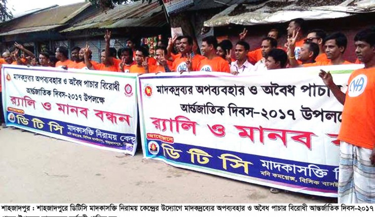 শামছুর রহমান শিশির, শাহজাদপুর থেকে : আজ শনিবার শাহজাদপুরে ডিটিসি মাদকাসক্তি নিরাময় কেন্দ্রের উদ্যোগে মাদকদ্রব্যের অপব্যবহার ও অবৈধ পাচার বিরোধী আন্তর্জাতিক দিবস-২০১৭ উপলক্ষে র‌্যালি, মানববন্ধন, সংক্ষিপ্ত পথসভাসহ জনসচেতনতামূলক নানা কর্মসূচী পালিত হয়েছে। সকালে শাহজাদপুর পৌরসদরের প্রগতি সংঘ কার্যালয় থেকে একটি র‌্যালি বের হয়ে শাহজাদপুর প্রেসক্লাব চত্বরে শেষ হয়। পরে সেখানে আধাঘন্টাব্যাপী মানববন্ধন শেষে সংক্ষিপ্ত পথসভায় অন্যান্যের মধ্যে বক্তব্য রাখেন, শাহজাদপুর উপজেলা পরিষদের ভাইস চেয়ারম্যান মুস্তাক আহমেদ, সিরাজগঞ্জ জেলা মাদকদ্রব্য নিয়ন্ত্রণ অফিসের উপ-পরিদর্শক মো: মেহেদুল ইসলাম সর্দার, প্রগতি সংঘের সভাপতি ও বিশিষ্ট তাঁতবস্ত্র রফতানীকারক এনামুল হাসান মোজমাল, সাধারণ সম্পাদক সাজ্জাদ হোসেন আলমাস, যুবলীগ নেতা রাজীব শেখ, ডিটিসি মাদকাসক্তি নিরাময় কেন্দ্রের নির্বাহী পরিচালক কামরুজ্জামান শাহীন প্রমূখ। বক্তারা বলেন,‘মাদকাশক্তি একটি মানষিক রোগ। এ রোগে আক্রান্তদের অবহেলায় নয়, ভালোবাসার মাধ্যমে চিকিৎসাসেবা প্রদান করে শারীরীক, মানষিক, চারিত্রিক, নৈতিক, সামাজিক ও আধ্যাতিক উন্নতির মাধ্যমে সুস্থ্য স্বাভাবিক জিবনে ফিরিয়ে আনা সম্ভব। আর পাবনা ও সিরাজগঞ্জ জেলা একমাত্র সরকারিভাবে অনুমোদনকৃত প্রতিষ্ঠান শাহজাদপুরের বিসিক বাসষ্ট্যান্ড সংলগ্ন ডিটিসি মাদকাসক্তি নিরাময় কেন্দ্রে বিশেষজ্ঞ চিকিৎসকেরা ডিটক্সিফিকেশন, কগনেটিভ বিহেভিয়ার থেরাপি, শিক্ষামূলক ক্লাস ও সেশন, ওয়ার্ক কন্ডিশনিং, মটিভেশন, ব্যাক্তিগত কাউন্সেলিং, রিল্যাক্স প্রিভেনশন প্লানিং , গ্রুপ থেরাপি, শিথিলায়ন ও মেডিটেশন, দ্বাদশ ধাপ দিয়ে কাউন্সেলিং, পারিবারিক কাউন্সেলিং ও ক্লাস, বিনোদন ও খেলাধুলা, নামাজ ও ধর্মীয় বই পড়ার অনুশীলন এবং ফলোআপ ও আফটার কেয়ার এসব চিকিৎসা পদ্ধতির মাধ্যমে মাদকে আসক্তদের সুস্থ্য ও স্বাভাবিক জীবনে ফিরিয়ে আনছে। বক্তারা ওই কাজে জেলা মাদকদ্রব্য নিয়ন্ত্রণ অফিসারদের নিয়মিত তদারিক ও দিকনির্দেশনার জন্য বিশেষ কৃতজ্ঞতা জ্ঞাপন করেন।’ ওই কর্মসূচীতে এলাকার শতাধিক যুবকেরা স্বতস্ফূর্তভাবে অংশ নেয়।