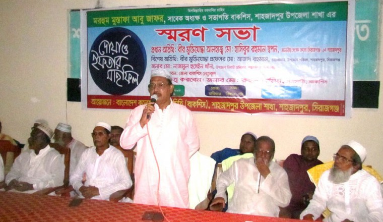 নিজস্ব প্রতিনিধি: ‘পবিত্র মাহে রমজান মাস মুসলমানদের জন্য অন্যতম গুরুত্বপূর্ণ মাস। তাই প্রত্যেক মুসলমানদের রমজান মাসে রোজা রাখা ও নামাজ পড়া উচিত। গতকাল রোববার বিকেলে শাহজাদপুর মহিলা ডিগ্রি কলেজে বাকসিশের সাবেক সভাপতি ও সাবেক অধ্যক্ষ মুস্তাফা আবু জাফর স্মরণে অনুষ্ঠিত স্মরণ সভায় প্রধান অতিথির বক্তব্যে উপরোক্ত কথাগুলো বলেন স্থানীয় সংসদ সদস্য আলহাজ্ব হাসিবুর রহমান স্বপন। বক্তব্য প্রদানকালে তিনি আরও বলেন, ‘মরহুম মুস্তাফা আবু জাফর ছিলেন সৎ, আদর্শবান ও ন্যয়পরায়ন ব্যক্তি। তার আদর্শ ও নীতি শিক্ষকদের অনুকরণ করা উচিত।’ ওই কলেজের অধ্যক্ষ রুহুল আমিনের সভাপতিত্বে অনুষ্ঠিত ওই স্মরণসভায় অন্যান্যের মধ্যে বক্তব্য রাখেন, শাহজাদপুর উপজেলা পরিষদের চেয়ারম্যান প্রফেসর আজাদ রহমান, পৌর মেয়র (দায়িত্বপ্রাপ্ত) নাসির উদ্দিন, জেলা বাকসিশের সহ-সভাপতি অধ্যক্ষ হায়দার আলী, সাধারণ সম্পাদক ইকবাল হোসেন, জেলা সাংগঠনিক সম্পাদক জাকির, উপজেলা বাকসিশের সাংগঠনিক সম্পাদক জসিম উদ্দিন, সাধারণ সম্পাদক আব্দুস ছালাম, সাবেক অধ্যক্ষ আব্দুল হাই, উপজেলা আওয়ামী লীগের সাংগঠনিক সম্পাদক ও সাবেক ভাইস চেয়ারম্যান মুস্তাক আহমেদ, পৌর আওয়ামী লীগের সাধারণ সম্পাদক আমিরুল ইসলাম শাহু, অধ্যক্ষ কামাল পাশা, আনোয়ার হোসেন, মোস্তাফিজুল হক, তাহসিন হোসেন, তানজিলা রহমান প্রমুখ। স্মরণসভা শেষে ইফতার ও দোয়া মাহফিল অনুষ্ঠিত হয়।
