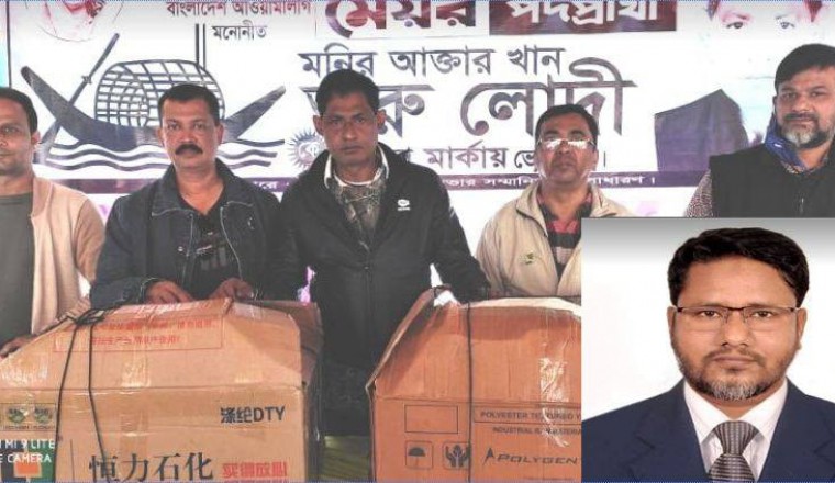 আসন্ন ২৮ ডিসেম্বর সিরাজগঞ্জের শাহজাদপুর পৌরসভা নির্বাচনের বাংলাদেশ আওয়ামী লীগ মনোনীত নৌকা প্রতিকের মেয়র প্রার্থী মনির আক্তার খান তরু লোদীকে মানব কল্যাণমূলক কাজের অংশ হিসেবে পৌরবাসীর মধ্যে বিনামূল্যে বিতরণের জন্য ৫ হাজার মাস্ক অনুদান দিয়েছে বাংলাদেশ তাঁতী লীগ কেন্দ্রীয় কমিটির ধর্ম বিষয়ক সম্পাদক আব্দুল আলীম মিলন।
