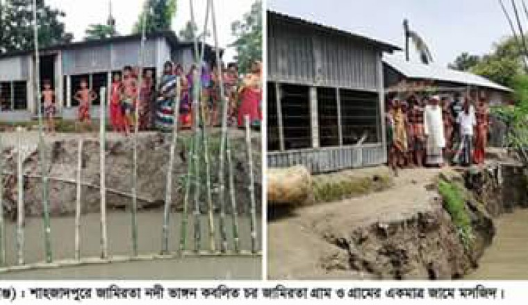 শামছুর রহমান শিশির : প্রবলা, প্রমত্তা, প্রগলতা, রাক্ষুসী যমুনা বর্ষা মৌসুমের শুরুতেই ভাঙ্গনের তান্ডবলীলায় মেতে উঠেছে। সিরাজগঞ্জের শাহজাদপুর উপজেলার জালালপুর ইউনিয়নের পাঁচিল, চরুয়াপাঁচিল, ভেগা ও বাঐখোলা গ্রামে যমুনা নদীর ভয়াবহ ভাঙ্গনে অাতংকিত হয়ে পড়েছে এলাকাবাসী। আগ্রাসী যমুনার শাখা পার জামিরতা নদীতেও তীব্র ভাঙ্গন শুরু হয়েছে। নদী ভাঙ্গনের কবলে পোরজনা ইউনিয়নের চর জামিরতা উত্তর পাড়া মহল্লার একটি বড় অংশসহ ভয়াবহ হুমকিতে পড়েছে ওই গ্রামের একমাত্র জামে মসজিদ, ফসলী জমি, বাড়িঘরসহ নানা স্থাপনা। জানা হেছে, জামিরতা ও পার জামিরতা গ্রামের মাঝ দিয়ে প্রবাহিত পার জামিরতা নদীটিতে বর্ষার পানি বৃদ্ধির সাথে সাথে ভাঙ্গনের লিপ্সায় উত্তাল হয়ে উঠেছে । ভয়াবহ ভাঙ্গনের কবলে পতিত চর জামিরতা (উত্তর) গ্রামের একমাত্র জামে মসজিদে উদ্বেগের সাথে প্রতিদিন পাঁচ ওয়াক্ত নামাজ আদায় করছেন। এসব স্থানে ভাঙ্গনের গভীরতা প্রায় ২০ থেকে ৩০ ফুট বলে স্থানীয়রা জানিয়েছে। গ্রামবাসীরা ভাঙ্গন রোধে নিজেদের উদ্যোগে বাশেঁর ছটকা নির্মাণ এবং বালির বস্তা ফেলে ভাঙ্গন রোধের চেষ্টা করছে। কিন্তু, তাতে কোনই ফল আসছে না। সত্তরোর্ধ্ব বয়োবৃদ্ধ আনছার আলী বলেন, ‘লোক মুখে শুনি বিভিন্ন মসজিদ, মাদ্রাসা ও মন্দির উন্নয়নের জন্য সরকার ইউনিয়ন পরিষদের মাধ্যমে বিভিন্ন অনুদান দেয়। কিন্তু, আমরা আমাদের এই ৬০/৭০ বছর বয়সের পুরাতন মসজিদটিতে কোনই অনুদান পাই নি।’ অপরদিকে, মসজিদ কমিটির সভাপতি আব্দুল কুদ্দুস এ প্রতিবেদককে বলেন, ‘আমাদের মসজিদের নিজস্ব ক্যাশ মাত্র ৭ হাজার টাকা। কিন্তু, গ্রাম এবং মসজিদটিকে ভাঙ্গনের হাত থেকে রক্ষা করার জন্য আমরা এরই মধ্যেই ভাঙ্গন ঠেকাতে বাঁশ, বালি, বালির বস্তা, চাটাই, বাঁশের তারাই ইত্যাদি বাকিতে কিনে ভাঙ্গন রোধের চেষ্টা করছি। যেগুলোর মূল্য সব মিলে ১ লাখ ২২ হাজার টাকা। কোন প্রকার অনুদান বা সহযোগীতা ছাড়াই গ্রামবাসীকে সাথে নিয়ে বাধ্য হয়েই এগুলো করছি।’ এদিকে, ভাঙ্গণ রোধে এলাকাবাসী স্থানীয় এমপি, জেলা প্রশাসক এবং সংশ্লিষ্ট মন্ত্রণালয়ের কাছে জোর দাবি জানিয়েছে এলাকাবাসী।