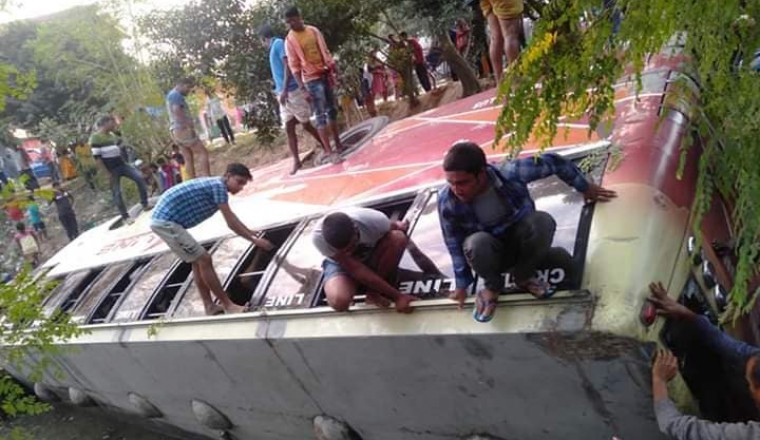 আবুল কাশেম : আজ (শনিবার) বিকেলে বগুড়া-নগরবাড়ি মহাসড়কের শাহজাদপুর উপজেলার টেটিয়াকান্দা সিএনজি পাম্প সংলগ্ন স্থানে পাবনাগামী দুরপাল্লার যাত্রীবাহী বাস সি-লাইন (নং-ঢাকা মেট্টো-ব ১৪৯৭৯৩) একটি যাত্রীবাহী বাস অপর একটি সিএনজি টেম্পুকে ওভারটেক করতে গিয়ে নিয়ন্ত্রণ হারিয়ে দুর্ঘটনার কবলে পতিত হয়। এ ঘটনায় কমপক্ষে ৬ জন যাত্রী আহত হয়েছে। এ ঘটনার পরপরই এলাকাবাসী ও স্থানীয় দমকল বাহিনীর কর্মীরা দ্রুত ঘটনাস্থলে গিয়ে বাসের ভিতর আটকে পড়া যাত্রীদের উদ্ধার করে। এলাকাবাসীর অভিযোগ, মহাসড়কে সিএনজি টেম্পুর চলাচলের ওপর নিষেধাজ্ঞা থাকা সত্বেও প্রতিনিয়ত অসংখ্য সিএনটি টেম্পু বগুড়া-নগরবাড়ী মহাসড়কের শাহজাদপুর থেকে উল্লাপাড়া পর্যন্ত অংশে বেপোরোয়া ভাবে চলাচল করায় প্রায়শই সড়ক দুর্ঘটনা ঘটছে। এতে যাত্রী সাধারণ ও পরিবহন মালিকদের অপূরণীয় ক্ষয়ক্ষতি হচ্ছে।
