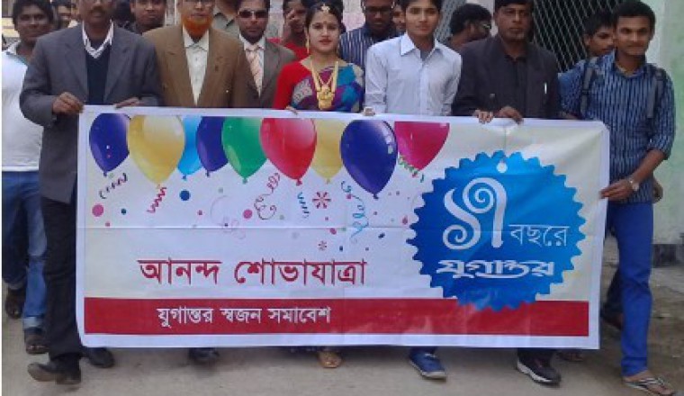 বর্ণাঢ্য এ অনুষ্ঠানে বাউল গান পরিবেশন করেন সুর ঝংকার বাউল শিল্পী গোষ্ঠির- খোরশেদ আলম বয়াতি, নূর ইসলাম বয়াতি, আব্দুল আলিম বয়াতি, বাবলু সরকার বয়াতি, আব্দুল আজিজ বয়াতি, রিন্টু বয়াতি ও পাঞ্জু সরকার। সকালে সরকারি কলেজ থেকে আনন্দ শোভাযাত্রা শুরু হয়। আনন্দ শোভাযাত্রাটি শহরের গুরুত্বপূর্ণ সড়ক ও মোড় প্রদক্ষিণকালে স্বজন সদস্য বৃন্দ ও বাউল শিল্পীরা হাতে একতারা, দোতারা, ঢোল, বাশিঁ ও মন্দিরার তালে তালে নেচে গেয়ে আনন্দ উল্লাস প্রকাশ করেন। এ সময় যুগান্তরের শুভ জন্মদিন ধ্বনিতে পুরো এলাকায় মুখরিত হয়ে উঠে।এ আনন্দ শোভাযাত্রা শেষে শাহজাদপুর সরকারি কলেজ শহীদ মিনার চত্ত্বরে কেক কেটে যুগান্তরের জন্মদিন পালন করা হয়। সবশেষে আলোনা সভায় অতিথিরা যুগান্তরের দীর্ঘায়ু কামনা করে বক্তব্যদান কালে বলেন, যুগান্তর সব সময়ই সত্যের সন্ধানে অবিচল থেকে নির্ভিক ও বস্তুনিষ্ঠ সংবাদ পরিবেশন করে থাকেন । তাদের বলিষ্ঠ লেখনিতে প্রতিনিয়ত উঠে আসে নানা অনিয়ম দূর্নীতি ও সমাজের নানা অসঙ্গতির চিত্র। এ অনুষ্ঠানে স্বজন বন্ধুদের মাঝে উপস্থিত ছিলেন, সম্পদ খান, মুহাইমিনুর রহমান মুন, আলামিন হোসেন, আল মামুন, আতিকুর রহমান, ওলী আহমেদ, শাহান আলী, রূপস হোসেন, গোলাম মোস্তফা, লিমন আহমেদ, মজনু শেখ, রাসেল আহমেদ, ওমর ফারুক, ইমরান হোসেন, মিলন হোসেন, সাকিবুর রহমান, মাহবুবুর রহমান, মামুন আহমেদ, রবিউল ইসলাম, ফারুক খান ও নুরে আলম আনছারী।