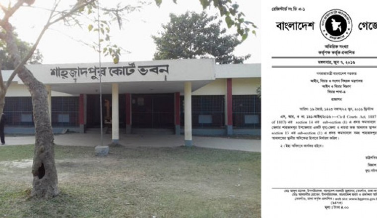 শাহজাদপুর (সিরাজগঞ্জ) উপজেলা সংবাদদাতাঃ সকল জল্পনা কল্পনার অবসান ঘটিয়ে অবশেষে শাহজাদপুরে যুগ্ম-জেলা ও দায়রা জজ আদালত স্থাপনের জন্য প্রজ্ঞাপন জারি করেছে সরকার। গত ২ জুন সরকারের পক্ষে রাষ্ট্রপতির আদেশক্রমে প্রজ্ঞাপনটি জারি করেছেন আইন, বিচার ও সংসদ বিষয়ক মন্ত্রনালয়ের যুগ্ম-সচিব (প্রশাসন-১) বিকাশ কুমার সাহা। গত ৭ জুন মঙ্গলবার ‘বাংলাদেশ গেজেট’র অতিরিক্ত সংখ্যায় প্রজ্ঞাপনটি প্রকাশিত হয়েছে। প্রজ্ঞাপন সূত্রে জানা গেছে, ‘এস,আর ও নং ১৯১-আইন/২০১৬। Civil Courts Act, 1887 ( Act. No. XII of 1887 ) এর ংsection 14 এর ংঁsub-section (1) এ ক্ষমতাবলে সরকার সিরাজগঞ্জ জেলার শাহজাদপুর উপজেলায় একটি যুগ্ম-জেলা ও দায়রা জজ আদালত স্থাপন (fix) করিল এবং sub-section (1) এ প্রদত্ত ক্ষমতাবলে সমগ্র শাহজাদপুর উপজেলাকে উক্ত আদালতের স্থানীয় অধিক্ষেত্র হিসাবে নির্ধারণ করিল। ইহা অবিলম্বে কার্যকর হইবে।’ এ বিষয়ে গতকাল শুক্রবার শাহজাদপুর উপজেলা আইনজীবি সমিতির সভাপতি এ্যাড. আনোয়ার হোসেন ও সাধারণ সম্পাদক এ্যাড. এস এ হামিদ লাভলু বলেন,‘ বিচার প্রক্রিয়াকে বিচারপ্রার্থী জনগণের দোড়গোড়ায় নিয়ে আসার সরকারি এ উদ্যোগকে স্বাগত জানাই এবং মাননীয় প্রধানমন্ত্রী শেখ হাসিনা, আইনমন্ত্রী আনিসুল হক, আইন সচিব আবু সালেহ শেখ মোঃ জহুরুল হকসহ সংশ্লিষ্টদের প্রতি গভীর কৃতজ্ঞতা জ্ঞাপন করছি।’