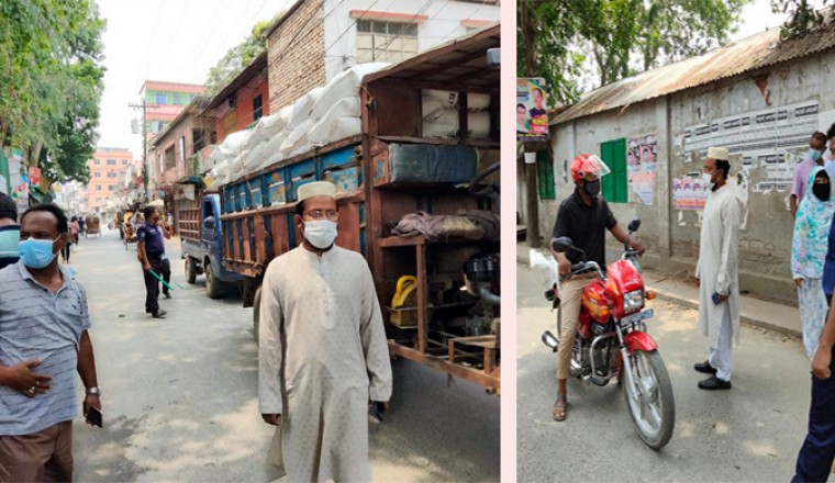 করোনাভাইরাস প্রতিরোধে সিরাজগঞ্জের শাহজাদপুর প্রশাসনের মোবাইল কোর্ট পরিচালনা ও মাস্ক বিতরণ করা হয়। এ সময় সবাইকে সামাজিক দুরত্ব মেনে চলা ও মাস্ক পরিধানের পরামর্শ দেওয়া হয়। জানা যায়, বৃহস্পতিবার(১৫এপ্রিল) পৌর সদরে সরকারি নির্দেশনা লকডাউন অমান্যকারীদের বিরুদ্ধে সংক্রামক রোগ (প্রতিরোধ, নিয়ন্ত্রণ ও নির্মুল আইন-২০১৮) এর আওতায় ৪ টি মামলা করে ১০০০(এক হাজার) টাকা এ অর্থদন্ড দেয়া হয়। এ মোবাইল কোর্ট পরিচালনা করেন সহকারী কমিশনার (ভূমি) ও এক্সিকিউটিভ ম্যাজিস্ট্রেট মোঃ মাসুদ হোসেন। শাহজাদপুরের সহকারী কমিশনার (ভূমি) ও এক্সিকিউটিভ ম্যাজিস্ট্রেট মোঃ মাসুদ হোসেন জানান, সরকারের এই কঠোর লকডাউন এর পরিস্থিতি পর্যবেক্ষণ করতে এ অভিযান অব্যাহত থাকবে।