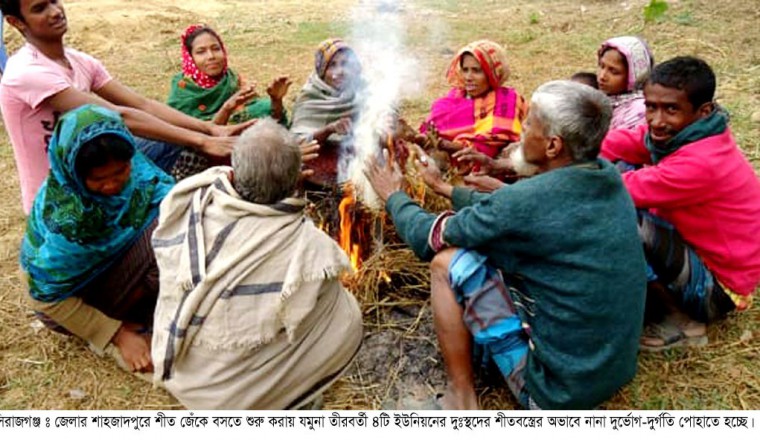 শামছুর রহমান শিশির : গত ক’দিন হলো সিরাজগঞ্জের শাহজাদপুরে শীত জেঁকে বসতে শুরু করেছে। হিমেল হাওয়া, ঘন কুয়াশা আর কনকনে ঠান্ডায় সবচেয়ে বেশী দুর্ভোগ দুর্গতি পোহাতে হচ্ছে উপজেলা যমুনা নদী তীরবর্তী ৪টি ইউনিয়নের সহায়-সম্বলহীন দুঃস্থদের। শীতবস্ত্রের অভাবে যমুনা নদী তীরবর্তী দুর্গম অঞ্চলের অসহায় দুঃস্থ আমজনতার পাশাপাশি যমুনার দুর্গম চরাঞ্চলের হাজার হাজার আবাল-বৃদ্ধ-বণিতা শীতবস্ত্রের অভাবে অতিকষ্টে দিন কাটাচ্ছে। অর্থাভাবে শীতবস্ত্র ক্রয় করতে না পেরে অনেকেই খড়কুটো জ্বালিয়ে শীত নিবারণের চেষ্টা করছে।এক সময়ের প্রবলা, প্রমত্তা, প্রগলভা, সমুদ্রের যোগ্য সহচারী, রাক্ষুসী, উত্তাল যমুনার কড়াল গ্রাসে বারবার ঘরবাড়ি, জমিজমা, সহায়-সম্বল সব কিছু হারিয়ে পথের ভিখারীতে পরিণত হওয়া শত শত ওইসব চির অবহেলিত, চির পতিত, চির অপাংক্তেয় দুঃস্থ্য আমজনতা, যাদের বুক ফাঁটে তো মুখ ফোটে না, যাদের বিচারের বাণী নিরবে নিভৃতে কাদের তাদের মধ্যে শীতবস্ত্র বিতরণ জরুরী হয়ে পড়েছে। যমুনা তীরবর্তী শাহজাদপুর উপজেলার কৈজুরী ইউনিয়নের জগতলা গ্রামের এছাক মিয়া, রহিমা বেওয়া, কুলছুনসহ যমুনা নদী তীরবর্তী ও যমুনার চরাঞ্চলের বেশ কয়েকজন অসহায় এলাকাবাসী জানান, ‘শীতে আর কী করমু বাই। পোলাপান লিয়্যা তিন ব্যালা প্যাট ভইর‌্যা খাইব্যারই পারিন্যা, কম্বল কিনমু ক্যাবা কইর‌্যা। যদি চিয়্যারম্যান, মেম্বার, বড়লোকেরা আমাগরে শীত থ্যেইক্যা বাচাইতে কম্বল দিলোনি, তালি বালোই অইলোনি। আল্লাহর কাছ দোয়া কইরল্যামনি। আপনেরা কিছু করেন বাই, আমাগরে ল্যাইগ্যা কিছু করেন।’ এদিকে, গত কয়েকদিন ধরে শাহজাদপুরে শীত জেঁকে বসতে শুরু করায় ওইসব হৎদরিদ্র আমজনতার মাঝে শীতবস্ত্র বিতরণ জরুরী হয়ে পড়েছে বলে এলাকাবাসী মনে করছেন।