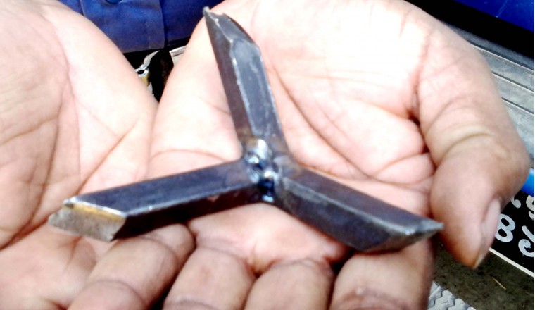 শাহজাদপুর প্রতিনিধিঃ টানা হরতাল অবরোধে শাহজাদপুর উল্লাপাড়া সহ সিরাজগঞ্জ ও পাবনা জেলার সড়ক-মহাসড়কে এখন পিকেটিংয়ের কাজে ব্যবহৃত হচ্ছে নতুন অস্ত্র লোহার তৈরী ত্রি কোণ বিশেষ কাকরা। এই কাকরার বিশেষত্ব হলো এটি রাস্তায় ছড়িয়ে ছিটিয়ে ফেলে রাখলেই সড়কে চলাচলকারী যানবহনের চাকায় ঢুকে গিয়ে চাকা পাম্পচার হয়ে যায়। এতে সহজে গাড়ী অচল হয়ে পরে। অবরোধে পেট্রোল বোমায় নৃশংসতা ও বিভৎসতায় বিরূপ প্রভাব পড়ায় পিকেটাররা এই অভিনব ও দেশীয় পদ্ধতিতে আবিস্কৃত লোহার তৈরী কাকরা বেশী ব্যবহার করছে। এতে একদিকে যেমন জনজীবনে নেমে আসা বিভৎসতা কমছে অপর দিকে অবরোধকারীদের সড়ক-মহাসড়ক অবরোধ সফল হচ্ছে। ফলে অবরোধকারীদের কাছে এর ব্যবহার ক্রমেই বাড়ছে এবং পেট্রোল বোমার ব্যবহার সীমিত হচ্ছে। অবরোধকারীরা এই কাকরা স্থানীয় ওয়ার্কসপে খুব কম সময়ে ও অল্প খরচে তৈরী করছে। জানালার গ্রীলে ব্যবহৃত ৪ সূত চৌকোণা ২ ইঞ্চি রড কে এল এর মতো বানিয়ে তার সাথে আরেকটি ১ ইঞ্চি সরল আকৃতির রড ওয়েল্ডিং করে তিন কোণা এ কাকরা তৈরী করা হচ্ছে। খুব সহজে যান বহনের চাকায় ঢুকে চাকাকে ছিদ্র করে পাম্পচার করতে পারে এর জন্য প্রতিটি কোণার মাথা আড়াআড়ি করে কেটে ফলার মতো তীক্ষè করা হয়। গতকাল শনিবার রাতে শাহজাদপুর উপজেলার মশিপুর-শরিষাকোল এলাকার বগুড়া নগরবাড়ী মহাসড়কের উপর ফেলে রাখা অবস্থায় পুলিশ অবরোধকারীদের ব্যবহৃত নতুন অস্ত্র লোহার তৈরী একটি কাকরা উদ্ধার করে। এ ব্যাপারে শাহজাদপুর থানার এসআই আব্দুস সালাম জানান,পিকেটাররা যানবহন কে লক্ষ করে এটি ছুরে দিলে চাকার নীচে পরে চাকা পাম্পচার হয়ে যায়। এতে যানবহন দূর্ঘটনা কবলিত হয়ে পরে । এ ভয়ে যানবহন বিশেষ করে রাতের আধাঁরে চলাচল করতে সাহস পায়না । অপর দিকে যাত্রীবাহী বাস কোচে এ অস্ত্রটি নিক্ষেপ করা হলে যানমালের ব্যাপক ক্ষয় ক্ষতির আশংকা রয়েছে। তাই শাহজাদপুর সহ এ অঞ্চলের সব গুলো সড়কে টহলরত পুলিশদের এ ব্যাপারে সতর্ক করে দেয়া হয়েছে। সড়কে দেখা মাত্র তা অপসারণ করে নিরাপদে যানবহন চলাচলের ব্যবস্থা নিতে তাদের নির্দেশ দেয়া হয়েছে।