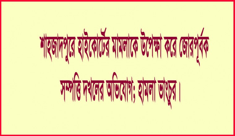 নিজস্ব প্রতিবেদক, শাহজাদপুর : জমিজমা সংক্রান্ত বিষয়ে হাইকোর্টে চলমান একটি মামলাকে উপেক্ষা করে শাহজাদপুর পৌর এলাকার পুকুরপাড় মহল্লায় জোরপূর্বক সম্পত্তি দখলের অভিযোগ পাওয়া গেছে। এ ব্যাপারে পৌর এলাকার পুকুরপাড় মহল্লার স্বর্গীয় বিধি প্রসাদ চৌধুরীর স্ত্রী শংকরী চৌধুরী শাহজাদপুর থানায় একটি অভিযোগ দাখিল করেছেন। দাখিলকৃত ওই অভিযোগ সূত্রে জানা গেছে, ‘শাহজাদপুর পৌর এলাকার পুকুরপাড় মহল্লার স্বর্গীয় বিধি প্রসাদ চৌধুরী জমিজমা সংক্রান্ত বিষয়ে একই গ্রামের স্বর্গীয় বগলা প্রসাদ চৌধুরীর ছেলে বরেন ওরফে দেবব্রত চৌধুরী (৫২), সুচিত্রা চৌধুরী (৪৫) ও সাগর চৌধুরী (২৫) কে বিবাদী করে হাইকোর্টে একটি মামলা দায়ের করেন মোকাদ্দমা নং-৪৫৬, তারিখ: ৩০/০৩/২০১৪ ইং) যা বর্তমানে হাইকোর্টে বিচারাধীন রয়েছে। হাইকোর্টে চলমান ওই মামলাকে উপেক্ষা করে গত বুধবার উপরিউল্লেখিত বিবাদীগণ বিধি প্রসাদ চৌধুরীর স্ত্রী শংকরী চৌধুরীর বসতবাড়িসহ সম্পত্তি জবরদখল ও উচ্ছেদের জন্য তার বাড়িতে হামলা চালিয়ে সম্পত্তি জবরদখল ও ভাংচুর চালিয়ে মন্দিরঘর, পল্লী বিদ্যুতের মিটারসহ বসতবাড়ির প্রায় দেড় লাখ টাকার ক্ষতিসাধণ করে। সেইসাথে শংকরী চৌধুরীকে দেখে নেয়ার হুমকি দেন মামলার বিবাদী বরেন, সুচিত্রা ও সাগর। এ ঘটনার পর থেকে বাদী শংকরী চরম নিরাপত্বাহীনতায় ভূগছেন। এ বিষয়ে শাহজাদপুর থানার অফিসার ইনচার্জ মো: খাজা গোলাম কিবরিয়ার সাথে যোগাযোগ করা হলে তিনি জানান,‘শংকরী চৌধুরী বাদী হয়ে থানায় একটি অভিযোগ দাখিল করেছেন। তদন্তপূর্বক দোষীদের বিরুদ্ধে প্রয়োজনীয় আইনানুগ ব্যবস্থা নেয়া হবে।’