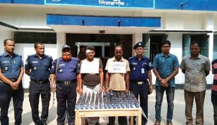 শামছুর রহমান শিশির : গতকাল বৃহস্পতিবার ভোররাতে গোপন সংবাদের ভিত্তিতে শাহজাদপুর থানার অফিসার ইনচার্জ মোঃ আতাউর রহমানের নির্দেশনায় থানা পুলিশের একটি বিশেষ দল পৌর এলাকার মাওলানা সাইফুদ্দিন এহিয়া ডিগ্রি কলেজ সংলগ্ন এলাকায় অভিযান চালিয়ে ১'শ পিছ ভারতীয় আমদানি নিষিদ্ধ মাদক ফেন্সিড্রিলসহ কুখ্যাত মাদক সম্রাট পারুল ইসলাম (৪৮) ও কামাল হোসেন (৪৫) কে গ্রেফতার করেছে। ধৃতদের বিরুদ্ধে থানায় মামলা হয়েছে ও গতকালই তাদের জেলহাজতে প্রেরণ করা হয়েছে। থানা পুলিশ জানায়, বৃহস্পতিবার ভোররাতে শাহজাদপুর থানার অফিসার ইনচার্জ মোঃ আতাউর রহমানের নির্দেশনায় থানার পুলিশ পরিদর্শক (তদন্ত) কে এম রাকিবুল হুদা, পুলিশ পরিদর্শক (অপারেশন এন্ড কমিউনিটি পুলিশিং) আসলাম হোসেনের নেতৃত্বে থানার এসআই এসলাম আলী, এএসআই মেহেদুল ইসলাম, এএসআই জসিম উদ্দিন সঙ্গীয় ফোর্সসহ মাদক উদ্ধার অভিযান পরিচালনাকালে শাহজাদপুর পৌর এলাকার মাওলানা সাইফুদ্দিন এহিয়া ডিগ্রি কলেজের উত্তর পাশ সংলগ্ন এলাকায় অভিযান চালিয়ে চাঁপাইনবাবগঞ্জের শিবগঞ্জ থানার সাহাপাড়া মহল্লার মৃত মোয়াজ্জেম হোসেনের ছেলে আন্তঃজেলার কুখ্যাত মাদক সম্রাট পারুল ইসলাম (৪৮) ও একই থানার ছত্রাসিয়া মহল্লার মৃত ইসরাইলের ছেলে মাদক সম্রাট কামাল হোসেন (৪৫)কে ১'শ বোতল ফেন্সিডিলসহ হাতেনাতে গ্রেফতার করে থানায় নিয়ে যায়। ধৃত আসামীদের বিরুদ্ধে বিশেষ ক্ষমতা আইনে থানায় মামলা দায়ের হয়েছে। এ বিষয়ে শাহজাদপুর থানার অফিসার ইনচার্জ মোঃ আতাউর রহমান বলেন, 'চলমান মাদকবিরোধী বিশেষ অভিযান অব্যাহত থাকবে।'