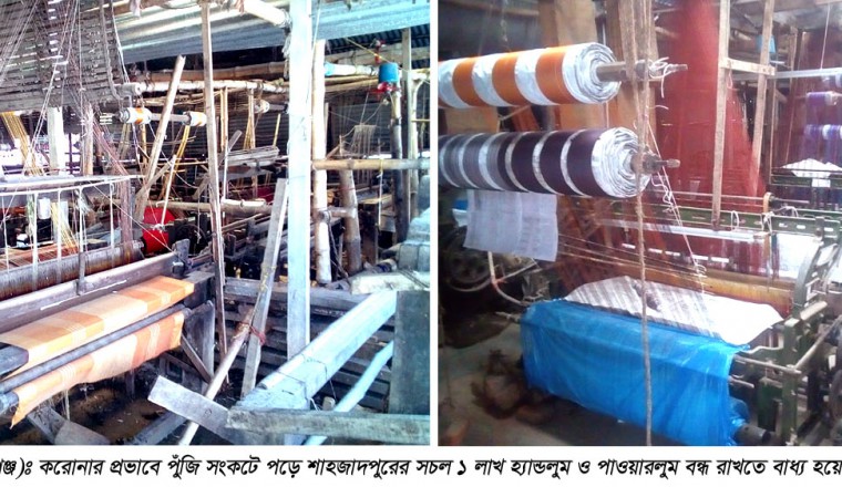 করোনা ভাইরাসের প্রভাবে দেশের তাঁতশিল্পের কেন্দ্রবিন্দু সিরাজগঞ্জ জেলার শাহজাদপুরে প্রায় ১ লাখ হ্যান্ডলুম ও পাওয়ারলুম বন্ধ হয়ে গেছে। করোনার ক্রান্তিকালের দীর্ঘ সময় এলাকার এসব তাঁত কারখানায় উৎপাদন বন্ধ, উত্তরাঞ্চলের সর্ববৃহৎ শাহজাদপুর কাপড়ের হাটসহ পাশর্^বর্তী সোহাগপুর, এনায়েতপুর, আতাইকুলা হাটে তাঁতবস্ত্রের বেচাকেনা বন্ধ ও বিশেষ করে পরিবহনজণিত কারণে সৃষ্ট তীব্র কাঁচামাল সংকটের ফলে গত প্রায় আড়াই মাসে শাহজাদপুরে প্রায় ১ লাখ তাঁত মালিক ও শ্রমিক বেকার হয়ে মানবেতর দিনযাপন করছে। শাহজাদপুরসহ সিরাজগঞ্জ জেলায় উৎপাদিত শাড়ি, লুঙ্গি, গামছাসহ তাঁতবস্ত্র দেশে তাঁতবস্তের মোট চাহিদার প্রায় ৭০ ভাগ পূরণ করলেও তাঁতশিল্পকে রক্ষায় এখনও পর্যন্ত কার্যকর উদ্যোগ না নেয়ায় দেশের সর্ববৃহৎ কুঁটিরশিল্প ঐতিহ্যবাহী তাঁতশিল্পে ভয়াবহ বিপর্যয় নেমে এসেছে। ফলে এলাকার দেড় লাখ তাঁত মালিক ও শ্রমিকেরা তাদের জীবন জীবীকার প্রশ্নে চোখেমুখে রীতিমতো সর্ষের ফুল দেখছে। এদিকে, তাঁতশিল্পের উন্নয়ন ও তাঁতীদের ভাগ্যোন্নয়নে শাহজাদপুরের বিসিক বাসস্ট্যান্ডে স্থাপিত বাংলাদেশ তাঁত বোর্ড এলাকার তাঁতীদের কোন উপকারেই না আসায় তা পুরোপুরি অকার্যকর প্রতিষ্ঠানে পরিণত হয়েছে। বিজ্ঞমহলের মতে, ‘ঐতিহ্যবাহী তাঁতশিল্পের ভয়াবহ বিপর্যয় রোধ ও সংকট মোকাবেলায় এবং তাঁতী ও শ্রমিকদের বাঁচাতে অনতিবিলম্বে সরকারিভাবে পুঁজি সংকটে বেকার হয়ে পড়া প্রান্তিক তাঁতীদের মাঝে পাওয়ারলুম প্রতি ১ লাখ ও হ্যান্ডলুম প্রতি ৫০ হাজার টাকা সুদমুক্ত ঋণ প্রদান, তাঁতবোর্ড বিলুপ্ত করে তাঁতী কল্যাণ ব্যাংক প্রতিষ্ঠা, সূতার বাজার সিন্ডিকেট মুক্তকরণ, তাঁত গবেষণা কেন্দ্র স্থাপন, তাঁতিদের প্রশিক্ষণ প্রদান, ভারত থেকে আনা সব কাউন্টের সূতা ও কাঁচামালের শুল্কমুক্ত প্রবেশাধিকার নিশ্চিত এবং বিদেশে তাঁতবস্ত্র রফতানীর উদ্যোগ গ্রহণ করা হলে তাঁতশিল্প ফিরে পাবে তার নিজস্ব অতীত গৌরব ও ঐতিহ্য। এর ব্যাত্যয় ঘটলে বিরাজমান ভয়াবহ সংকট থেকে কোনভাবেই তাঁতশিল্পকে রক্ষা সম্ভব হবে না। ’ সংশ্লিষ্ট সূত্রে জানা গেছে, শাহজাদপুর উপজেলার পৌর এলাকাসহ ১৩টি ইউনিয়নে প্রায় দেড় লাখ তাঁত রয়েছে। তন্মদ্ধে প্রায় ১ লাখ পাওয়ারলুম ও প্রায় ৫০ হাজার হ্যান্ডলুম রয়েছে। লকডাউন ঘোষিত সময়কালে শাহজাদপুরের সকল তাঁত কারখানা বন্ধ ছিলো। এ দীর্ঘ সময়ে এলাকার তাঁতীরা কোনরূপ তাঁতবস্ত্র উৎপাদন বা উৎপাদিত বস্ত্র হাট বাজারে বিক্রি করতে পারেনি। এ সময় বাধ্য হয়ে তাঁত মালিকেরা অনেকেই পুঁজি ভেঙ্গে ফেলেছেন আবার অনেকেই ঋণপানে জর্জরিত হয়েছেন। লকডাউন তুলে নেয়ার পর তাঁত মালিকেরা তাদের তাঁত কারখানা চালু করার অনুমতি পেলেও পর