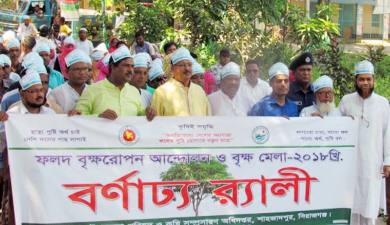 নিজস্ব প্রতিনিধি : ‘অপ্রতিরোধ্য দেশের অগ্রযাত্রা ফলের পুষ্টি যোগাবে নতুন মাত্রা’ এই প্রতিপাদ্য নিয়ে গতকাল শনিবার শাহজাদপুরে ৩ দিন ব্যাপি ফলদ বৃক্ষরোপন আন্দোলন ও বৃক্ষমেলা ২০১৮ শুরু হয়। ৩ দিনের ওই বৃক্ষমেলা আগামীকাল সোমবার শেষ হবে। শাহজাদপুর উপজেলা পরিষদ ও কৃষি সম্প্রসারণ অধিদপ্তর এ মেলার আয়োজন করেছে। গতকাল শনিবার সকালে স্থানীয় শাহজাদপুর মডেল পাইলট উচ্চ বিদ্যালয় মাঠে আয়োজিত ওই বৃক্ষ মেলায় প্রধান অতিথি হিসেবে উপস্থিত থেকে ৩ দিন ব্যাপি বৃক্ষমেলার আনুষ্ঠানিক উদ্বোধন করেন স্থানীয় সংসদ সদস্য আলহাজ্ব হাসিবুর রহমান স্বপন। বিদ্যালয় মাঠের মুক্ত মঞ্চে আয়োজিত উদ্বোধনী অনুষ্ঠানে সভাপতিত্ব করেন শাহজাদপুর উপজেলা নির্বাহী অফিসার নাজমুল হুসেইন খাঁন। এতে বিশেষ অতিথি হিসেবে উপস্থিত ছিলেন, উপজেলা পরিষদের চেয়ারম্যান প্রফেসর আজাদ রহমান, ভাইস চেয়ারম্যান মুস্তাক আহমেদ ও শাহজাদপুর পৌরসভার মেয়র (দায়িত্বপ্রাপ্ত) নাসির উদ্দিন। উদ্বোধনী অনুষ্ঠানে স্বাগত বক্তব্য রাখেন উপজেলা কৃষি অফিসার কৃষিবিদ মনজু আলম সরকার। এতে অন্যান্যদের মধ্যে বক্তব্য রাখেন বিশিষ্ট শিক্ষাবিদ সাবেক অধ্যক্ষ এ এম আব্দুল আজীজ, অধ্যাপক নাছিম উদ্দিন মালিথা, থানার অফিসার ইনচার্জ মোঃ খাজা গোলাম কিবরিয়া, উপ-সহকারী উদ্ভিদ সংরক্ষণ অফিসার মনজুর কাদের প্রমুখ। উদ্বোধনী দিনের আলোচনা সভা শেষে প্রধান অতিথি হাসিবুর রহমান স্বপন এমপি স্থানীয় কৃষকদের মাঝে ফলদ বৃক্ষের চারা বিতরণ করেন। এর আগে বৃক্ষমেলা উপলক্ষে এক বর্ণাঢ্য র‌্যালি পৌর এলাকার বিভিন্ন সড়ক প্রদক্ষিণ করে। বৃক্ষমেলায় বিভিন্ন ফলদ বৃক্ষের ৪০টি স্টল স্থাপন করা হয়েছে। ৩ দিনের ওই বৃক্ষ মেলার ২য় দিন রোববারে উল্লেখযোগ্য বৃক্ষপ্রেমিদের উপস্থিতি ছিলো লক্ষণীয়।