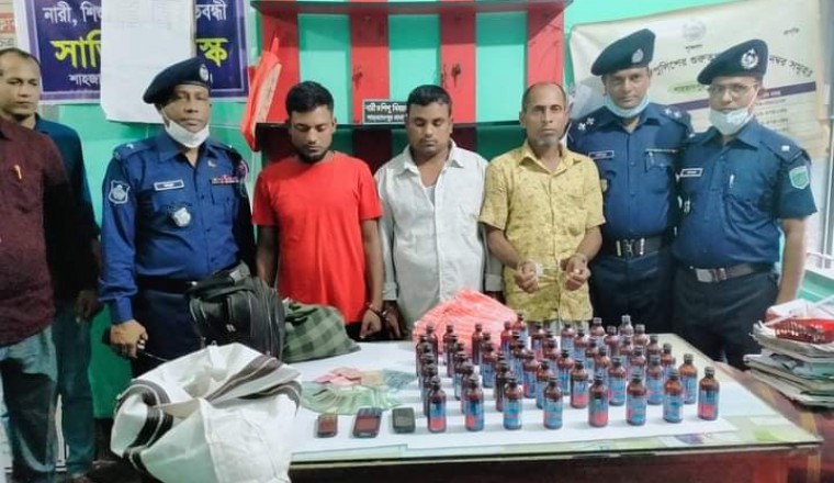 শাহজাদপুরে ফেনসিডিলসহ তিন মাদককারবারিকে আটক করেছে শাহজাদপুর থানা পুলিশ। শাহজাদপুর থানার ভারপ্রাপ্ত কর্মকর্তা মোঃ শাহিদ মাহমুদ খানের নির্দেশনায় এসআই মোঃ খলিলুর রহমান, এসআই মোঃ এসলাম আলী আলী, এএসআই মোঃ মেহেদুল ইসলাম, এএসআই কাঞ্চন কুমার সহ পুলিশের একটি দল অভিযান চালিয়ে সোমবার (৭ সেপ্টেম্বর) রাতে উপজেলার পৌর সদরের বিসিক বাস স্ট্যান্ড থেকে তাদের আটক করে থানায় নিয়ে আসেন। এ সময় তাদের কাছ থেকে ৪৯ বোতল ফেনসিডিল, তিনটি মোবাইল ও নগদ ৯ হাজার ৮৭০ টাকা জব্দ করা হয়। আটক তিনজন হলেন- পাবনা জেলার বেড়া উপজেলার মরিচা পড়ার মোঃ শাহিন, মোঃ আল মাবুদ ও মোঃ আলম শেখ। তাদের বিরুদ্ধে শাহজাদপুর থানায় মাদক আইনে মামলা হয়েছে। মঙ্গলবার বিকেলে শাহজাদপুর থানা অফিসার ইনচার্জ মোঃ শাহিদ মাহমুদ খান প্রেস ব্রিফিং করে জানান, গোপন সংবাদের ভিত্তিতে আমরা জানতে পারি যে তিনজন মাদক কারবারি বিক্রয় নিষিদ্ধ ভারতীয় নেশাজাত দ্রব্য ফেন্সিডিল নিয়ে পাবনা এক্সপ্রেসে নামে একটি গাড়িতে করে পাবনার উদ্দেশ্যে রওনা হয়েছে। তখন শাহজাদপুর থানা পুলিশের একটি দল অভিযান চালিয়ে তিন মাদককারবারিকে আটক করে। এ সময় তাদের থেকে ৪৯ বোতল ফেনসিডিল, তিনটি মোবাইল ও নগদ সাড়ে ৯ হাজার ৮৭০ টাকা জব্দ করা হয়।