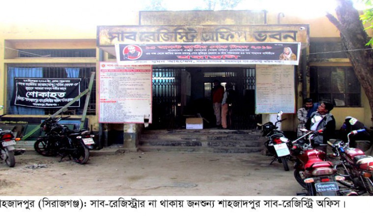 শামছুর রহমান শিশির : সিরাজগঞ্জ জেলার শাহজাদপুর সাব-রেজিস্ট্রি অফিসে দীর্ঘ প্রায় ৪ মাস ধরে দলিল রেজিস্ট্রি বন্ধ থাকায় জনভোগান্তী চরমে পৌঁছেছে। পাশাপাশি শাহজাদপুর সাব-রেজিষ্ট্রি অফিসে কর্মরত প্রায় আড়াই শতাধিক দলিল লেখক, নকল নবিশসহ সংশ্লিষ্টরা কর্মহীন হয়ে পড়ায় পরিবার পরিজন নিয়ে তারা মানবেতর দিনযাপন করছে। দেখার কেউ নেই। নেই কেউ জনভোগান্তী লাঘবেরও ! জানা গেছে, শাহজাদপুর উপজেলাটি উত্তরাঞ্চলের মধ্যে অন্যতম গুরুত্বপূর্ণ ও ঘনবসতিপূর্ণ এলাকা। তাঁতশিল্প ও দুগ্ধশিল্পসমৃদ্ধ এ উপজেলা ১৩ টি ইউনিয়ন ও ১টি পৌরসভা নিয়ে গঠিত। প্রায় ৬ লাখ লোকের বসবাস এ উপজেলায়। সংশ্লিষ্ট সূত্রে জানা গেছে, সিরাজগঞ্জ জেলাসদরসহ সকল উপজেলার মধ্যে সবচেয়ে বেশি দলিল রেজিস্ট্রি হয় শাহজাদপুর সাব-রেজিষ্ট্রি অফিসে। এ অফিস প্রতিদিন প্রায় ৭০ থেকে ৮০ দলিল রেজিস্ট্রি হয়। অথচ গত ৪ মাস ধরে এ অফিসে সব ধরনের দলিল রেজিস্ট্রি বন্ধ শাহজাদপুর সাব-রেজিস্ট্রি অফিস বর্তমানে জনশূণ্য অফিসে পরিণত হয়েছে। এতে দলিল লেখক, নকল নবিশসহ প্রায় ২’শ ৫০ জন কর্মহীন হয়ে মানবেতর জীবন যাপন করছে। পরিবার পরিজনের জীবন জীবিকার প্রশ্নে বর্তমানে তারা চোখেমুখে রীতিমতো সর্ষের ফুল দেখছে। কর্ম ও আয় না থাকায় অনেকেই ঋণপানে জর্জরিত হয়ে পড়ছে। সব মিলিয়ে তাদের ভাগ্যাকাশে বিরাজ করছে কালো মেঘের ঘনঘটা। এদিকে, শাহজাদপুর সাব-রেজিস্ট্রি অফিসের সাব-রেজিস্ট্রার সুব্রত কুমার দাসকে ঘুষ গ্রহণের অভিযোগে প্রায় ৪ মাস পূর্বে বরখাস্ত করার পর থেকে পদটি শূণ্য হয়ে পড়ে। এরপর দীর্ঘ ৪ মাস অতিবাহিত হলেও জনদুর্ভোগ লাঘবে শূন্য ওই পদে নতুন কোন কর্মকর্তাকে পদায়ন না করায় দিনে দিনে ভোগান্তী আরও বাড়ছে। শাহজাদপুর দলিল লেখক সমিতির সভাপতি আলহাজ্ব আব্দুস সাত্তার, সাধারণ সম্পাদক মহির উদ্দিন, উপদেষ্টা আব্দুর রশিদ জানান, ‘প্রায় ৪ মাস ধরে শাহজাদপুর সাব-রেজিস্ট্রি অফিসে কোন দলিল রেজিস্ট্রি না হওয়ায় তারাসহ এলাকাবাসী চরম বিপাকে পড়েছেন। অনেকেই জমি ক্রয়-বিক্রয় করতে না পেরে তীব্র ক্ষোভ আর চরম অসন্তোষ প্রকাশ করছেন। কবে নাগাদ এ দুরাবস্থা দূরীভূত হবে সে বিষয়েও কেউ কিছু বলতে পারছে না। জমিজমা বিক্রয় করতে না পেরে অনেকেই চরা সুদে টাকা ঋণ নিতে বাধ্য হচ্ছে। এ অফিসে দিনে প্রায় ৭০ থেকে ৮০ টি দলিল রেজিস্ট্রি না হওয়ায় সরকার সাময়িকভাবে বিপুল পরিমান রাজস্ব প্রাপ্তি থেকেও বঞ্চিত হচ্ছে। অনেকে নকল তুলতে না পেরে হাঁ-হুতাশ করছে। দলিল লেখক আলহাজ্ব মানিক হোসেন, হাচেন আলী, আজিজুল হক শিমুল, জাহিদ হোসেন, মোক্তার হোসেন, রফিকুল ইসলাম, মোশাররফ হোসেন, সজিব আহমেদসহ অনেকেই অভিযোগে জানান, ‘শাহজাদপুর সাব-রেজিস্ট্রি অফিসে লাইসেন্সপ্রাপ্ত ৯৫ জন দ