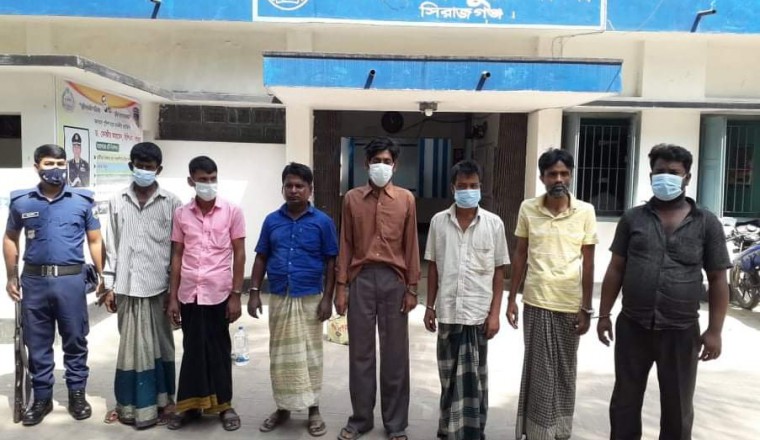গত ২৪ ঘন্টায় শাহজাদপুরের পৃথক ৫ স্থানে ডিবি ও থানা পুলিশ অভিযান চালিয়ে ইয়াবা, হেরোইন ও চোলাই মদসহ ৭ মাদক ব্যবসায়ীকে গ্রেফতার করেছে। থানা পুলিশ জানায়, বৃহস্পতিবার (১ এপ্রিল) রাত ১০ টার দিকে সিরাজগঞ্জের অতিরিক্ত পুলিশ সুপার (শাহজাদপুর সার্কেল) হাসিবুল ইসলামের নির্দেশনায় শাহজাদপুর থানার অফিসার ইনচার্জ শাহিদ মাহমুদ খানের নেতৃত্বে ওসি (তদন্ত) কমল কুমার দেবনাথ সঙ্গীয় অফিসারসহ থানা পুলিশের একটি দল পৌর এলাকার বিসিক বাসস্ট্যান্ডের উত্তর পার্শ্বে অভিযান চালিয়ে শক্তিপুর পশ্চিমপাড়া মহল্লার হাচেন শেখের ছেলে মাদক বিক্রেতা হায়দার আলী (৪০) কে ৪০ পুরিয়া হেরোইনসহ গ্রেফতার করে। এদিন রাত ৯ টায় জামিরতা ডিগ্রি কলেজের পূর্বদিক সংলগ্ন স্থানে থানা পুলিশ অপর এক অভিযান চালিয়ে জামিরতা কলেজপাড়া মহল্লার মৃত হোসেন আলী ফকিরের ছেলে কোরবান আলী ফকির (৪১) কে ১০ লিটার চোলাই মদসহ গ্রেফতার করে। এছাড়া, একইদিন দুপুরে পোতাজিয়া উপজেলা স্বাস্থ্য কমপ্লেক্সের পরিত্যাক্ত ভবনে পুলিশ অপর এক অভিযান চালিয়ে রাজশাহীর বাঘা উপজেলার আরানী সাহেবপাড়া মহল্লার (বর্তমানে পোতাজিয়া গাতিরপাড়ার বাসিন্দা) মৃত মজু ফকিরের ছেলে মাদক বিক্রেতা নবাব আলী (৪২) কে ২০ পিছ ইয়াবাসহ গ্রেফতার করে। ধৃতদের বিরুদ্ধে থানায় মামলা হয়েছে। অপরদিকে, বৃহস্পতিবার (১ এপ্রিল) বিকেলে সিরাজগঞ্জ জেলা গোয়েন্দা পুলিশের এসআই খোকনের নেতৃত্বে ডিবি পুলিশের একটি চৌকস দল শাহজাদপুর উপজেলার মাদলা দক্ষিণপাড়া মহল্লায় অভিযান চালিয়ে সাঁথিয়া উপজেলার সেলুন্দা মহল্লার সাব্বির (২৮) ও পৌর এলাকার পুকুড়পাড় গ্রামের রজব আলী (৪৫) কে ১'শ ৪০ পিছ ইয়াবাসহ গ্রেফতার করে। পরে ধৃতদের স্বীকারোক্তি অনুযায়ী পৌর এলাকার শক্তিপুর গ্রামের আতাউর হোসেন মার্কেট সংলগ্ন এলাকায় ডিবি পুলিশ অপর এক অভিযান চালিয়ে দ্বারিয়াপুর গ্রামের মিলন শেখ (৩৫) ও পাড়কোলা দক্ষিণপাড়া মহল্লার কোমল (৫৫) কে ২'শ ১০ পিছ ইয়াবাসহ গ্রেফতার করে। বৃহস্পতিবার রাতে পৃথক এ ২ ঘটনায় জেলা ডিবি পুলিশের এসআই আরিফুল ইসলাম বাদী হয়ে ধৃতদের বিরুদ্ধে শাহজাদপুর থানায় একটি মামলা দায়ের করেছেন। শুক্রবার (২ এপ্রিল) গ্রেফতারকৃতদের জেলহাজতে পাঠানো হয়েছে। শাহজাদপুরে চলমান এ ধরনের মাদকবিরোধী অভিযান অব্যাহত থাকবে বলে থানার ওসি (তদন্ত) কমল কুমার দেবনাথ জানিয়েছেন।