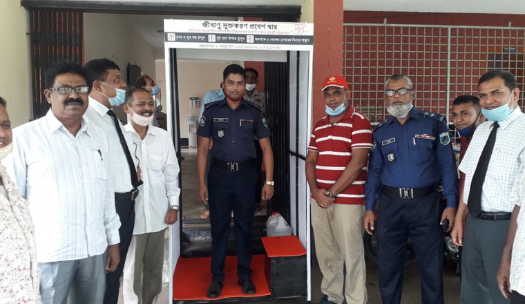 করোনা ভাইরাস (কোভিড-১৯) এর হানায় থমকে গেছে বিশ্ব। করোনার ভয়াল থাবায় তিনমাসের অধিক সময় ধরে বন্ধ ছিলো দেশের সকল অধস্তন আদালতের কার্যক্রম। এমতাবস্থায় স্বাস্থ্য বিধি মেনে সার্বিক বিবেচনায় দেশের সকল অধস্তন আদালতের কার্যক্রম পর্যায়ক্রমে চালু করার সিদ্ধান্ত নিয়েছে সরকার। শাহজাদপুরে বিভিন্ন গুরুত্বপূর্ণ সরকারি অফিসের প্রবেশপথে জীবাণু মুক্তকরণ প্রবেশদ্বার থাকলেও শাহজাদপুর চৌকি আদালতে এ ধরণের কোন ব্যবস্থা ছিলো না। করোনা পরিস্থিতি মোকাবেলায় শাহজাদপুরের কৃতি সন্তান এ্যাডঃ শেখ আব্দুল হামিদ লাবলুর সার্বিক ব্যাবস্থাপনায় শাহজাদপুর আইনজীবী সমিতি কোর্ট ভবনের প্রবেশ পথে জীবাণু মুক্তকরণ প্রবেশদ্বার স্থাপন করা হয়েছে। এছাড়াও সুপেয় বিশুদ্ধ খাবার পানির জন্য বিশেষ ব্যবস্থা করা হয়েছে আইনজীবী সমিতির পক্ষ থেকে। আজ রবিবার (১২জুলাই) এই জীবাণু মুক্তকরণ প্রবেশদ্বারের শুভ উদ্বোধন করেন শাহজাদপুর জুডিসিয়াল ম্যাজিষ্ট্রেট আবু খান শাহীন কনক। এসময় অন্যান্যদের মধ্যে উপস্থিত ছিলেন এ্যাডঃ শেখ আব্দুল হামিদ লাবলু, এজিপি আব্দুল আজিজ জেলহক, এ্যাডঃ কবির আজমল বিপুল মোঃওয়াজেদ আলী, আলী আকবর, কেএম রায়হান উদ্দিন, সিএসআই ফজলে বারীসহ প্রমূখ।