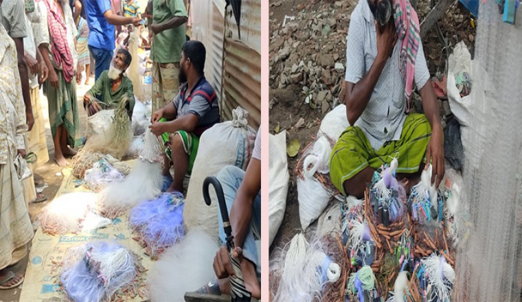 সয়লাব হয়ে পড়েছে নিষিদ্ধ কারেন্ট জালে তালগাছী হাট। প্রশাসনের নাকের ডগায় আইনের প্রতি বৃদ্ধাঙ্গুলি দেখিয়ে প্রকাশে এক শ্রেণীর অসাধু ব্যবসায়ীরা নিষিদ্ধ কারেন্ট জালের জমজমাট ব্যবসা চালিয়ে যাচ্ছে। রবিবার(৪সেপ্টেম্বর) সরজমিনে গিয়ে দেখা যায় উপজেলার তালগাছী হাটের গরু হাটার পাশে কারেন্ট জালের বিশাল পসরা সাজিয়ে বসেছেন ব্যবসায়ীরা।