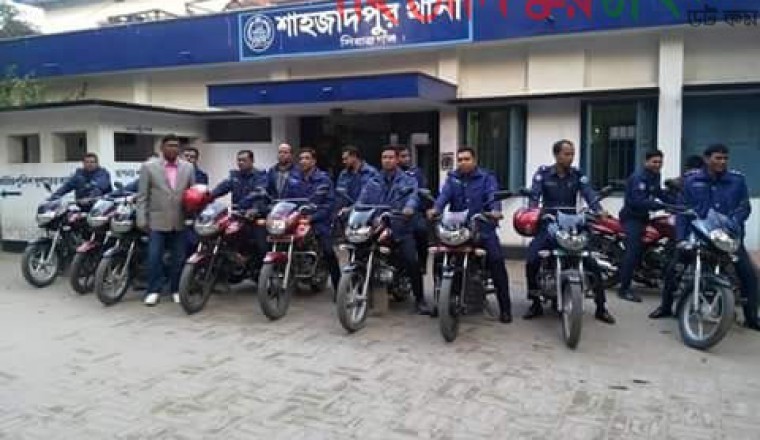 এম এ হান্নান শেখঃ আজ মঙ্গলবার বিকেলে আইনশৃঙ্খলা স্বাভাবিক রাখতে শাহজাদপুর থানা পুলিশের এক বিশেষ মহড়া অনুষ্ঠিত হয়েছে।শাহজাদপুর থানার ভারপ্রাপ্ত কর্মকর্তা(ওসি) খাজা গোলাম কিবরিয়ার নেতৃত্বে শাহজাদপুর থানা পুলিশের এ বিশেষ মহড়া অনুষ্ঠিত হয় মঙ্গলবার বিকেল ৪টায় শুরু হয়ে প্রায় ঘন্টাব্যাপী চলে এ মহড়া। শাহজাদপুর থানায় কর্মকরত অফিসারগন মোটর সাইকেল নিয়ছে এ মহড়ায় অংশগ্রহন করে। থানা চত্ত্বর থেকে শুরু করে পৌর শহরের বিভিন্ন সড়ক ও উপজেলার তালগাছি বাঘাবাড়ী সড়ক প্রদক্ষিন করে আবার থানা চত্ত্বরে এসে শেষ হয়। শাহজাদপুর থানা পুলিশের এ মহড়া টিমে অংশগ্রহনকারীদের মধ্যে উল্লেখযোগ্যদের মধ্যে ছিলেন পুলিশ পরিদর্শক (তদন্ত) কে এম রাকিবুল হুদা,এস আই গোলজার হোসেন,মোঃতৈয়ব,নওজেশ আলী ,এ এসআই আবুল কালাম সহ প্রমুখ। শাহজাদপুর থানার ভারপ্রাপ্ত কর্মকর্তা (ওসি) খাজা গোলাম কিবরিয়া জানান আইন শৃঙ্খলা শুষ্ঠ স্বাভাবিক রাখার উদ্দেশ্যে এ মহড়া অনুষ্ঠিত হয়। কেউ কোন প্রকার ভিতি সৃষ্টি করে যেন জনমনে শংকার সৃষ্টি করতে না পারে ও আইনশৃঙ্খলা স্বাভাবিক রাখার জন্য আজকের এ বিশেষ মহড়ার আয়োজন করা হয়। শাহজাদপুর থানার পুলিশ পরিদর্শক (তদন্ত) কে এম রাকিবুল হুদা জানান আইন শৃঙ্খলা স্বাভাবিক রাখার উ্দ্দেশে ভারপ্রাপ্ত কর্মকর্তা (ওসি) খাজা গোলাম কিবরিয়ার নেতৃত্বে এ মহড়া অনুষ্ঠিত হয়েছে। অনেকের মতে শাহজাদপুর থানার এমন মহড়ার আয়োজন নিঃসন্দেহে প্রশংসার দাবীদার।