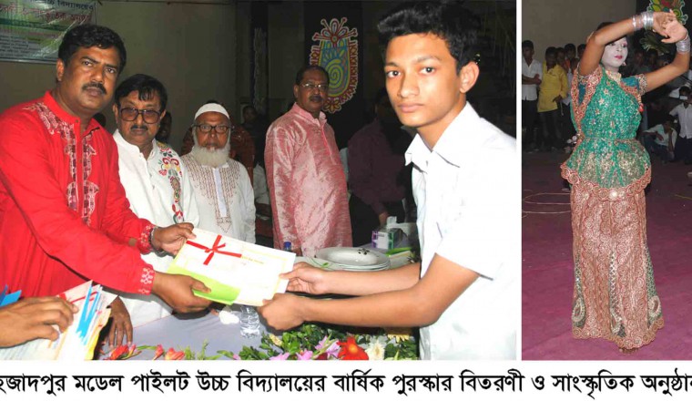 শাহজাদপুর প্রতিনিধিঃ বুধবার রবীন্দ্র কাচারি বাড়ী মিলতায়নে শাহজাদপুর মডেল পাইলট উচ্চ বিদ্যালয়ের বার্ষিক পুরস্কার বিতরণ ও সাংস্কৃতিক অনুষ্ঠান অনুষ্ঠিত হয়। এতে প্রধান অতিথি হিসাবে উপস্থিত ছিলেন সিরাজগঞ্জ-৬, (শাহজাদপুর) আসনের জাতীয় সংসদ সদস্য হাসিবুর রহমান স্বপন, বিশেষ অতিথি হিসাবে উপস্থিত ছিলেন উপজেলা চেয়ারম্যান প্রফেসর আজাদ রহমান। প্রধান শিক্ষক এস,এম সাইফুল ইসলামের সভাপতিত্বে অনুষ্ঠিত এ অনুষ্ঠানে বক্তব্য রাখেন ভাইচ চেয়ারম্যান মুস্তাক আহমেদ, প্রফেসর নাছিম উদ্দিন মালিথা, প্রফেসর আব্দুল আজিজ, উপজেলা নির্বাহী অফিসার শামীম আহমেদ, অফিসার ইনচার্জ শাহাবুদ্দিন খলিফা, হুমায়ন কবির প্রমুখ। পুরস্কার বিতরণী অনুষ্ঠানে ৬ষ্ঠ থেকে ১০ম শ্রেণি পর্যন্ত ১ম, ২য় ও ৩য় বিভাগে উত্তীর্ণ শিক্ষার্থীদের এবং বার্ষিক ক্রীড়া প্রতিযোগীতায় বিভিন্ন বিষয়ে বিজয়ীদের মধ্যে সনদ ও পুরস্কার বিতরণ করা হয়। এ পুরস্কার বিতরণ শেষে বিদ্যালয়ের শিক্ষার্থীদের পরিবেশনায় মনোজ্ঞ সাংস্কৃতিক অনুষ্ঠান অনুষ্ঠিত হয়। এতে শিক্ষার্থীরা কবিতা আবৃত্তি, সংগীত ও নৃত্য পরিবেশন করেন।