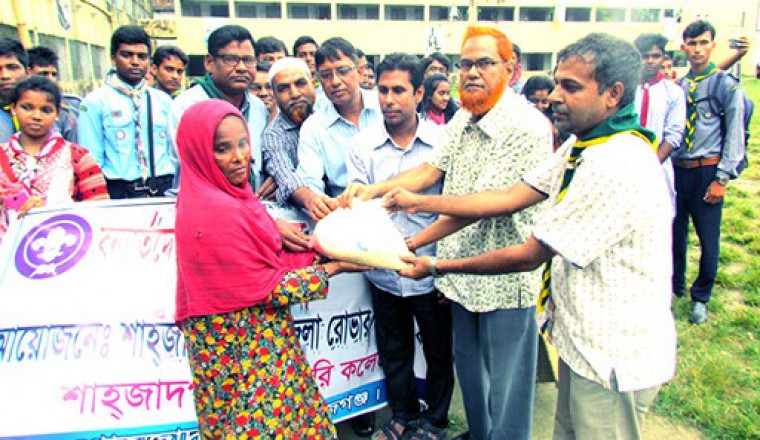 শাহজাদপুর উপজেলা সংবাদদাতাঃ গতকাল বুধবার শাহজাদপুর সরকারি কলেজ রোভার স্কাউটের উদ্যোগে শাহজাদপুর উপজেলার যমুনা নদীর দুর্গম এলাকা সোনাতনী ইউনিয়নের বন্যা কবলিত বিভিন্ন গ্রামে দিনভর বন্যার্তদের মাঝে ত্রাণ বিরতণ করা হয়েছে। দুপুরে সোনাতনী ইউনিয়নের মাকড়া,চামতারা, আগ বাঙ্গালাসহ প্রায় ৫ শতাধিক পরিবারের মধ্যে ত্রাণ বিরতণ করেন সরকারি কলেজের অধ্যক্ষ প্রফেসর আলী হায়দার রেজা তালুকদার। এ সময় অন্যান্যের মধ্যে উপস্থিত ছিলেন রোভার স্কাউটের আরএসএল আক্কাস আলী, সাখাওয়াত হোসেন,হাবিবুর রহমান, মাহবুুবুর রহমান মিলন,রায়হান আলী সরকারসহ রোভার স্কাউটের সদস্যবৃন্দ। এ ত্রাণ বিরতণ কার্যক্রমে বিশেষভাবে সহযোগীতা করেন,শাহজদপুর মুক্ত স্কাউট গ্রুপ, শাহজাদপুর মহিলা ডিগ্রি কলেজ, করতোয়া ডিগ্রি কলেজ । এছাড়া এলাকার গণমান্য ব্যক্তিবর্গ এ ত্রাণ বিরতণ কার্যক্রমে সহযোগীতা করেন।
