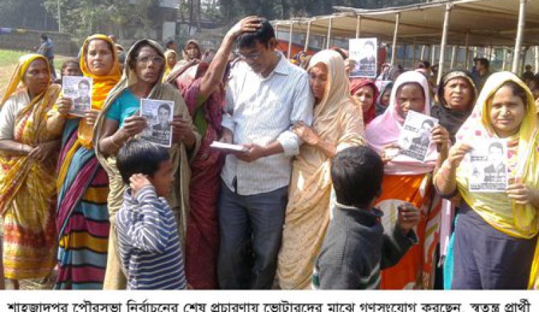 শাহজাদপুর প্রতিনিধিঃ আজ সোমবার শাহজাদপুর পৌরসভা নির্বাচনের শেষ প্রচারণায় প্রার্থীরা আদা-জল খেয়ে ভোটারদের দারে দারে ভোট প্রার্থনা করেছেন। ফলে প্রার্থীদের দিন কেটেছে মহা ব্যস্ততায়। শাহজাদপুর পৌরসভা নির্বাচনে মেয়র পদে ৫জন, সাধারণ কাউন্সিলর পদে ৫০ জন এবং সংরক্ষিত মহিলা কাউন্সিলর পদে ১৩ জন প্রার্থী প্রতিন্দ্বন্দ্বীতা করছেন। নানা ধরণের প্রতিশ্রুতির ফুলঝুড়ি ও মনভোলানো কথা দিয়ে তারা নিজেদের পক্ষে ভোট আদায় করতে ভোটারদের দারে দারে ঘুরছে। এর মধ্যে, স্বতন্ত্র মেয়র প্রার্থী আব্দুর রহিম (নারিকেল গাছ) কান্দাপাড়া এলাকায়, বিএনপির মেয়র প্রার্থী নজরুল ইসলাম (ধানের শীষ) দরগাপাড়ায় এবং আওয়ামীলীগ প্রার্থী হালিমুল হক মিরু (নৌকা) কে পাড়কোলা গ্রামে গণসংযোগ করতে দেখা গেছে। আগামী ৩০ ডিসেম্বর অনুষ্ঠিত এ নির্বাচনকে কেন্দ্র করে ভোটারদের মধ্যে উৎসব আমেজ বিরাজ করছে।