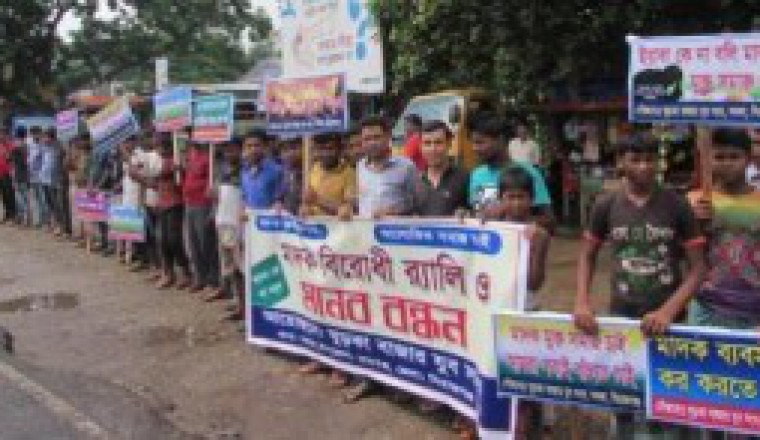 ডেস্ক রিপোর্ট :: সলঙ্গায় মাদক ও জুয়ার বিরুদ্ধে বিক্ষোভ মিছিল ও মানববন্ধন করেছে ঘুড়কা বেলতলা যুব সংঘ নামের একটি স্থানীয় সংগঠন। বুধবার সকাল ১০টায় ঢাকা – বগুড়া মহাসড়কের ঘুড়কা বেলতলা বাজারে ঘন্টা ব্যাপি এ মানববন্ধন কর্মসূচি পালিত হয়। এতে সভাপতিত্ব করেন ঘুড়কা বেলতলা যুব সংঘের সভাপতি শরিফুল ইসলাম রোকন। ঘুড়কা বেলতলা বাজার কেন্দ্রীয় জামে মসজিদের সভাপতি ফকরুল হাসান ঝন্টুর পরিচালনায় বক্তব্য রাখেন,সলঙ্গা থানা আওয়ামীলীগের যুগ্ম সাধারণ সম্পাদক কাঞ্চন কুমার দাস, বিশিষ্ট সমাজ সেবক পরেশ চন্দ্র তালুকদার, সাইফুল ইসলাম, শাহ আলম ভূইয়া,ফজলার রহমান,ইউপি সদস্য ফজলার রহমান,ছহির উদ্দিন শেখ,দাদপুর জি,আর কলেজের প্রভাষক হাফিজুল ইসলাম,সাবেক ইউপি সদস্য তপন কুমার রায়,ইউনিয়ন যুবলীগ নেতা আলমগীর হোসেন প্রমুখ। মানববন্ধন শেষে একটি বিক্ষোভ মিছিল উক্ত বাজারের প্রধান সড়ক গুলো প্রদক্ষিন করে।উক্ত মানববন্ধন ও বিক্ষোভ মিছিলে এলাকার স্কুল,কলেজের শিক্ষার্থী-শিক্ষকসহ বিভিন্নশ্রেণির পেশার লোকজন অংশগ্রহন করেন ।