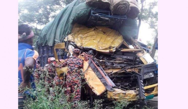 এতে ঘটনাস্থলেই ধানের কুঁড়োবাহী ট্রাকের হেলপারের মৃত্যু হয়। খবর পেয়ে পুলিশ ও ফায়ার সার্ভিস সদস্যরা ঘটনাস্থলে পৌঁছে নিহতের মরদেহ উদ্ধার করে। দুর্ঘটনাকবলিত ট্রাক দু'টি জব্দ করে হেফাজতে রাখা হয়েছে।