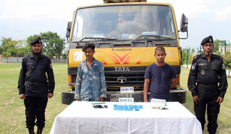 সিরাজগঞ্জের সলঙ্গায় ট্রাকে তল্লাশি চালিয়ে তিন হাজার ২৭৬ পিস ইয়াবা জব্দ করা হয়েছে। এ ঘটনায় জড়িত অভিযোগে দুই মাদক ব্যবসায়ীকে আটক করেছে র‌্যাপিড অ্যাকশন ব্যাটালিয়ন (র‌্যাব)। বৃহস্পতিবার বঙ্গবন্ধু সেতু পশ্চিম সংযোগ মহাসড়কের পাঁচলিয়া বাজার এলাকায় অভিযান চালিয়ে ওইসব ইয়াবা জব্দ ও তাদের আটক করা হয়। আটককৃতরা হলেন মুন্সীগঞ্জ জেলার শ্রীনগর উপজেলার ঘোলঘোর গ্রামের মো. রমজান এবং সিরাজগঞ্জের সলঙ্গা থানার চরধোপিল গ্রামের মো. সবুজ শেখ (২১)। র‌্যাব-১২ এর মিডিয়া অফিসার জ্যেষ্ঠ সহকারী পরিচালক এম এম এইচ ইমরান এ তথ্য নিশ্চিত করে বলেন, ‘গোপন সংবাদের ভিত্তিতে জানতে পারি ঢাকা থেকে বিপুল পরিমাণ ইয়াবার একটি চালান রাজশাহীর দিকে যাচ্ছে। এরই পরিপ্রেক্ষিতে পাঁচলিয়া বাজারে অস্থায়ী চেকপোস্ট বসানো হয়। তল্লাশিকালে রাজশাহীগামী একটি ট্রাক থেকে তিন হাজার ২৭৬ পিস ইয়াবা ট্যাবলেট জব্দ ও দুই মাদক ব্যবসায়ীকে আটক করা হয়। এ সময় মাদক ব্যবসার কাজে ব্যবহৃত তিনটি মোবাইল, তিনটি সিমকার্ড, নগদ তিন হাজার ২০০ টাকা ও ট্রাকটিকে জব্দ করা হয়। এ ঘটনায় সলঙ্গা থানায় মাদকদ্রব্য নিয়ন্ত্রণ আইনে মামলা করা হয়েছে।