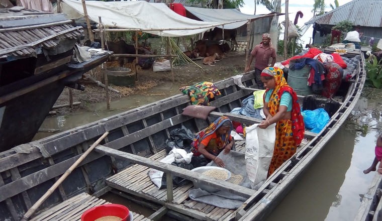 যমুনার নদীর পানি সিরাজগঞ্জে পয়েন্টে বিপদসীমার ৮৯ সে.মি. উপর দিয়ে প্রবাহিত হচ্ছে। জেলার ৫টি উপজেলার ৩৮টি ইউনিয়নের কয়েক লক্ষাধিক মানুষ পানিবন্দী হয়ে সীমাহীন দুর্ভোগে পড়েছে। বসতবাড়ী প্লাবিত হওয়ায় দুর্বিসহ জীবন কাটছে বানভাসীদের। চুলো জ্বলছে না অনেক বানভাসীর পরিবারে। খেয়ে না খেয়ে চলছে তাদের জীবন। শুকনো খাবার ও বিশুদ্ধ পানির সংকট দেখা দিয়েছে। উচু জায়গা না থাকায় নৌকায় খোলা আকাশের নীচে কাটছে অনেকের সংসার। গবাদি পশুর সাথে এক ঘরে রাত কাটাতে হচ্ছে তাদের। দুর্গম অঞ্চলগুলোতে এখনো পৌছেনি সরকারী ত্রাণ সহায়তা। যা দেয়া হয়েছে তা প্রয়োজনের তুলনায় অপ্রতুল। শরীরে ঘা-চুলকানিসহ পানিবাহিত বিভিন্ন রোগে আক্রান্ত হচ্ছে বানভাসী মানুষগুলো। কাজিপুরের নতুন খাসরাজবাড়ী গ্রামটি প্রায় ১৫দিন যাবত পানির নীচে তলিয়ে গেলেও এখানে কোন সরকারী সহায়তা পৌছেনি। এ গ্রামের কিছু কিছু মানুষ নৌকায় খোলা আকাশের নীচে দিনযাপন করছে। নতুন মাইজবাড়ীর চরে আধো ডুবো একটি ছোট্ট ওয়াপদার বাঁধের পাশে বেঁধে রাখা নৌকার উপর থেকে চেচিয়ে চেচিয়ে জ্যোতি চাকলাদার বলেন, আইজ ৮ দিন ধইর্যা নায়ের উপর আছি। নায়েই রান্দা, নায়েই খাওয়া, আবার নায়েই শোয়া, এভাবেই চইলত্যাছে আমগোরে জীবন। বানের পানিতে বাড়ি-ঘর ডুইবা গেছে, আশ্রয় কেন্দ্রেও থাকার জায়গা পাই নাই, কোনঠে যামু ? তাই প্রতিদিন ৭ থেকে ৮শ টাকার করে নৌকা ভাড়া নিয়া এহেনেই বউ ছওয়ালপাল নিয়া কুনমতে বাইচা আছি। নৌকায় আশ্রয় নেয়া রুস্তম খা, আব্দুস সালাম, বাবলু, সাঈদ, ইসমাইল ও আলমানি আকন্দ জানান, ৮/৯ দিন ধরে যমুনার পানি অব্যাহতভাবে বৃদ্ধি পাওয়ায় নতুন মাইজবাড়ী, খাসরাজবাড়ী, চর বুরুঙ্গী, উজান মেওয়াখোলা, ভাটি মেওয়াখোলা, মাইজবাড়ী, ঢেকুরিয়াসহ চরাঞ্চলের অর্ধশতাধিক গ্রাম পুরোপুরি প্লাবিত হয়েছে। প্রথম ঘরে বাঁশের মাচা তৈরী করে থাকার চেষ্টা করি। কিন্তু ধীরে ধীরে বাঁশের মাচাও ডুবে যায়। গ্রামের রাশিদা খাতুন জানান, রান্না করার জায়গা নেই। দিনে একবার পাক করা হয়। আর বাকী সময় না খেয়েই থাকতে হয়। জায়গা না থাকায় গরু ছাগলের সাথে এক ঘরেই রাত কাটাতে হয়। হযরত আলী জানান, কারও দুদিন, কারও একদিনের খাবার আছে। অনেকের খাবার সংকটের কারণে অন্যের কাছে ধার করতে হচ্ছে। এত কষ্ট স্বত্বেও এইসব অঞ্চলে এখনও সরকারী-বেসরকারী কোন ত্রাণ পৌছেনি বলে জানান নৌকার উপর আশ্রয় নেয়া বানভাসী মানুষেরা। নতুন মাইজবাড়ী এলাকার সংরক্ষিত নারী ইউপি সদস্য লতা খাতুন জানান, অন্যান্য এলাকায় ত্রাণ দিলেও এ অঞ্চলে এখনো কিছুই দেয়া হয়নি। আমরা চাহিদা দিয়েছি। আশা করছি দু-একদিনের মধ্যে ত্রাণ সহায়তা চলে আসবে। জেলা ত্রাণ ও পুনর্বাসন কর্মকর্তা ওয়ালী উদ্দিন জানান, এ প