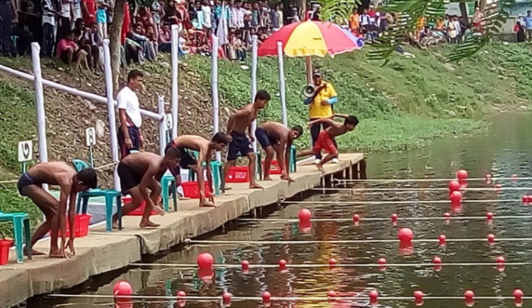 সিরাজগঞ্জ সংবাদদাতাঃ  ‘সেরা সাঁতারুর খোঁজে বাংলাদেশ’ এর খোজে গতকাল শনিবার সিরাজগঞ্জে অনুষ্ঠিত হয় সাঁতার প্রতিযোগীতা। সিরাজগঞ্জ সরকারী কলেজ পুকুরে বাংলাদেশ সুইমিং ফেডারেশন ও নৌবাহিনীর যৌথ উদ্যোগে এবং জেলা ক্রীড়া সংস্থার সহযোগীতায় এই প্রতিযোগীতা অনুষ্ঠিত হয়। প্রতিযোগিতায় অংশ নেয় বিভিন্ন বয়সী শতাধিক প্রতিযোগী। এ প্রতিযোগিতায় ৭ জন সাঁতারুকে ইয়েস কার্ড এবং ১০ জন সাঁতারুকে পুরুস্কার প্রদান করা হয়। এ অনুষ্ঠানে প্রধান অতিথি হিসেবে উপস্থিত ছিলেন সিরাজগঞ্জ জেলা প্রশাসক মোঃ বিল্লাল হোসেন। জেলা ক্রীড়া সংস্থার সাধারণ সম্পাদক গাজী শফিকুল শফির সভাপতিতে অনুষ্ঠিত এ¡ উদ্বোধনী অনুষ্ঠানে বক্তব্য রাখেন, নৌবাহিনীর কমান্ডার এস এম মাহমুদুর রহমান, লেফটেন্যান্ট কমান্ডার এম নাইমুল হক, লেফটেন্যান্ট কমান্ডার এম নাহিদ হাসান, বাংলাদেশ জাতীয় সুইমিং ফেডারেশনের সহ-সভাপতি আব্দুল মান্নান,ফেডারেশনের দক্ষিণ কোরিয়ান কোচ তেগুন পার্ক, সিরাজগঞ্জ সরকারী কলেজের অধ্যক্ষ এস এম মনোয়ার হোসেন প্রমূখ।
