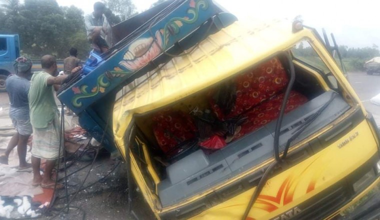 সিরাজগঞ্জের কামারখন্দ উপজেলায় দুই ট্রাকের মুখোমুখি সংঘর্ষে তিন জন নিহত হয়েছেন। এ ঘটনায় আহত হয়েছেন আরও দুই জন। বুধবার (১৭ জুন) দুপুর ১টার দিকে উপজেলার তালুকদার বাজারের কাছে এ দুর্ঘটনা ঘটে। আহতদের সিরাজগঞ্জ বঙ্গমাতা শেখ ফজিলাতুন্নেছা মুজিব জেনারেল হাসপাতালে ভর্তি করা হয়েছে। বঙ্গবন্ধু সেতু পশ্চিম থানার ভারপ্রাপ্ত কর্মকর্তা (ওসি) সৈয়দ শহীদ আলম দুর্ঘটনার সত্যতা নিশ্চিত করে বলেন, হটিকুমরুলগামী ইট বোঝাই একটি ট্রাকের সঙ্গে বিপরীত দিক থেকে আসা তুলা বোঝাই একটি ট্রাকের মুখোমুখি সংঘর্ষ হয়। এতে ঘটনাস্থলেই ইট বোঝাই ট্রাকের দুই শ্রমিকের মৃত্যু এবং আহত হয় আরও তিন জন। আহতদের উদ্ধার করে সিরাজগঞ্জ বঙ্গমাতা শেখ ফজিলাতুন্নেছা মুজিব জেনারেল হাসপাতালে নিয়ে গেলে আরও একজনের মৃত্যু হয়।