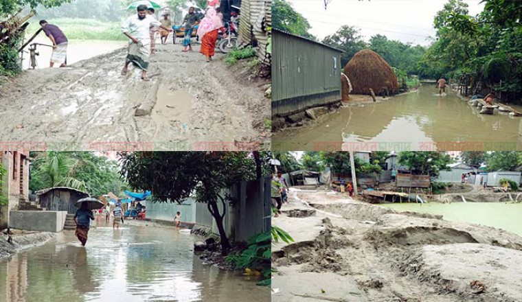শহর থেকে মাত্র ৬ কিলোমিটার পূর্বে সিরাজগঞ্জের শাহজাদপুর উপজেলার পোরজনা ইউনিয়নের নন্দলালপুর গ্রামের প্রায় বিশ হাজার মানুষের জন্য একটি মাত্র গ্রামীণ কাঁচা রাস্তার কারণে বছরের পর বছর চরম দুর্ভোগ পোহাতে হচ্ছে মানুষকে। গ্রামের চলাচলের একমাত্র রাস্তাটি নিয়ে মানুষের সীমাহীন কষ্ট। একটি কাঁচা রাস্তা দিয়ে গ্রামে যাওয়া আসা করতে গিয়ে বর্ষা মৌসুমের প্রত্যেক দিনই গ্রামবাসীকে ফেলতে হয় বুকভরা দীর্ঘশ্বাস। স্বাধীনতার ৫০ বছর পেরুলেও এই গ্রামটিতে সরকারি ভাবে কোন রাস্তা নির্মাণ হয়নি। সারাদেশে উন্নয়নের ছোঁয়া লাগলেও এই গ্রামটি এখনও উন্নয়ন বঞ্চিত বলে ক্ষোভ প্রকাশ করেন ওই গ্রামের বাসিন্দারা। জানা যায়, উপজেলার অন্যতম প্রাচীন এবং বৃহত্তম এই গ্রামটিতে প্রায় ২০ হাজার মানুষের বসবাস। সেইসাথে গ্রামে রয়েছে ২টি প্রাথমিক বিদ্যালয়, ১টি নিম্ন মাধ্যমিক বিদ্যালয়, ১টি আলিয়া মাদ্রাসা, ১টি হাফিজিয়া মাদ্রাসা, ১০টি মসজিদ ও ২ টি বাজার । এতগুলো প্রতিষ্ঠান এবং বিশাল জনগোষ্ঠীর চলাচলের জন্য একটিমাত্র রাস্তা থাকলেও তা চলাচলের প্রায় অযোগ্য। স্বাধীনতার পূর্ব থেকেই এ গ্রামের মানুষ পায়ে হেটে এবং নৌকায় যাতায়াত করতো। মাত্র দুই বছর আগে গ্রামের মানুষ সম্মিলিত ভাবে নিজেদের অর্থ দিয়ে প্রায় দেড় কোটি টাকা খরচ করে মাটি দিয়ে রাস্তা ভরাট করে। কিন্তু একটু বৃষ্টি হলেই এ রাস্তা দিয়ে চলাচল বিপজ্জনক হয়ে পড়ে। তবুও প্রয়োজনের তাগিদে জীবনের ঝুঁকি নিয়ে এ রাস্তা দিয়ে চলাচল করতে গিয়ে চরম ভোগান্তিতে প্রতিনিয়ত পড়ছে গ্রামবাসী। গ্রামের বাসিন্দা মোঃ রফিকুল ইসলাম (রওশন) জানান, রাস্তাটি বড়মহারাজপুর কবরস্থান হতে দক্ষিণ দিকে প্রায় ১ কিলোমিটার পাকা সড়কের পর থেকে আরও ২ কিলোমিটার কাচা রাস্তা রয়েছে গ্রামের শেষ প্রান্ত পর্যন্ত। সেটাও গ্রামের মানুষ নিজেদের টাকা দিয়ে মাটি ভরাট করেছে। এখন এই সড়কটি যদি কংক্রিটের রাস্তা করা হয় তবেই জনগণের দীর্ঘ কয়েক দশকের কষ্ট লাঘব হবে। নন্দলালপুর গ্রামের আলহাজ্ব শমসের আলী মাস্টার বলেন, ‘আমরা চরম অবহেলিত এলাকায় বসবাস করি, যার কারণে স্বাধীনতার ৫০ বছর হলেও গ্রামীণ এই অবহেলিত রাস্তাটিতে এখনো পর্যন্ত আধুনিকতার কোনো ছোঁয়া লাগেনি। জরুরি মুহূর্তে বয়স্ক মানুষ ও রোগীকে কাঁধ ভারে করে পাকা সড়কে নিয়ে যেতে হয়। চলাচলের জন্য আর কোনো রাস্তা নেই। এতে মানুষকে চরম দুর্ভোগ পোহাতে হয়। স্থানীয় প্রশাসনকে বিষয়টি অনেকবার জানানোর পরও রাস্তাটি এখনো বেহাল পড়ে আছে।’ তাই প্রায় বিশ হাজার জনগোষ্টির গুরুত্বপূর্ণ এই রাস্তাটি দ্রুত মেরামত করার দাবি জানান তিনি। গ্রামের বাসিন্দা মুনসুর সরকার বলেন, এই রাস্তা ছাড়া আর কোনো আমাদের চলাচলের জন্য রা