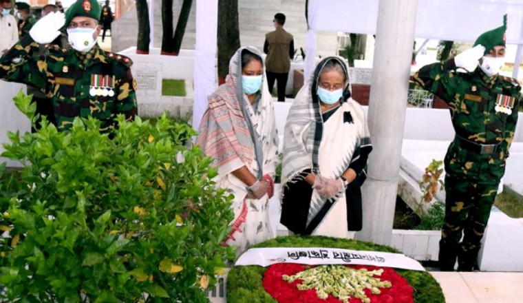 রাজধানীর বনানী কবরস্থানে ১৫ আগস্ট অন্যান্য শহীদদের প্রতি শ্রদ্ধা জানিয়েছেন প্রধানমন্ত্রী শেখ হাসিনা। জাতির পিতা বঙ্গবন্ধু শেখ মুজিবুর রহমানের ৪৫তম শাহাদাতবার্ষিকী ও জাতীয় শোক দিবস উপলক্ষে এ শ্রদ্ধা জানান তিনি। এর আগে প্রধানমন্ত্রী ধানমন্ডিতে বঙ্গবন্ধুর প্রতিকৃতিতে শ্রদ্ধা নিবেদন করেন। আজ শনিবার (১৫ আগস্ট) সকালে বনানী কবরস্থানে মা বঙ্গমাতা শেখ ফজিলাতুন্নেছা মুজিব, ভাই শেখ কামাল, শেখ জামাল ও শেখ রাসেলসহ ১৯৭৫ এর ১৫ আগস্টে নিহত অন্যদের কবরে ফুল দিয়ে শ্রদ্ধা জানান প্রধানমন্ত্রী। এ সময় ১৫ আগস্টে নিহতদের আত্মার মাগফিরাত কামনা করে দোয়া ও মোনাজাত করেন শেখ হাসিনা। এর আগে ভোর সাড়ে ৫টার দিকে ধানমন্ডির ৩২ নম্বরে বঙ্গবন্ধু স্মৃতি জাদুঘরের সামনে বঙ্গবন্ধুর প্রতিকৃতিতে পুষ্পস্তবক অর্পণের মাধ্যমে শ্রদ্ধা জানান তিনি। এরপর তিনি এ মহান নেতার প্রতি সম্মান জানিয়ে কিছুক্ষণ নীরবে দাঁড়িয়ে থাকেন। এ সময় সশস্ত্র বাহিনীর একটি চৌকস দল তাকে রাষ্ট্রীয় সালাম জানায়। বিউগলে বেজে ওঠে করুণ সুর। পরে ১৫ আগস্টে নিহতদের রুহের মাগফিরাত ও শান্তি কামনা করে বিশেষ মোনাজাত করা হয় এরপর প্রধানমন্ত্রী বঙ্গবন্ধু ভবনের ভেতরে গিয়ে বেশ কিছুক্ষণ অবস্থান করেন। এ সময় প্রধানমন্ত্রীর সঙ্গে ছিলেন তার কন্যা সায়মা ওয়াজেদ হোসেন পুতুল। এদিকে, মহান এ নেতার ৪৫তম শাহাদাতবার্ষিকী ও জাতীয় শোক দিবস উপলক্ষে সকাল ৮টায় বঙ্গবন্ধুর প্রতিকৃতিতে শ্রদ্ধা নিবেদন করবে আওয়ামী লীগ ও বিভিন্ন সহযোগী সংগঠন। বঙ্গবন্ধুর প্রতিকৃতিতে শ্রদ্ধা নিবেদনের পর বনানী কবরস্থানে ১৫ আগস্টের অন্যান্য নিহতের প্রতিও শ্রদ্ধা নিবেদন করবেন আওয়ামী লীগ ও সহযোগী সংগঠনের নেতাকর্মীরা।