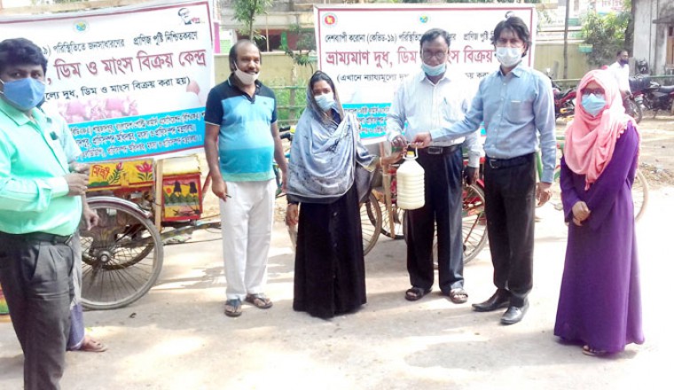 শাহজাদপুর উপজেলা প্রাণিসম্পদ কর্মকর্তা ডা. মিজানুর রহমান বলেন, করোনাভাইরাস সংক্রমণ মোকাবিলায় সরকারের ঘোষণা করা চলমান লকডাউনে সিরাজগঞ্জের শাহজাদপুরে উৎপাদিত দুধ এখন ভ্রাম্যমাণ গাড়িতে বিক্রি হচ্ছে। প্রতিদিন দুটি ভ্রাম্যমাণ ভ্যান গাড়িতে ১ হাজার লিটার দুধ পৌর ও উপজেলার বিভিন্ন স্থানে ৪০ টাকা লিটার দরে বিক্রি হচ্ছে। পাশাপশি ৪ হাজারের বেশি মুরগির ডিম বিক্রি হচ্ছে। তুলনামূলক দুধ ও ডিমে দাম কম হওয়ায় দিন দিন বাজারেও দুধের চাহিদা বাড়ছে। ভ্রাম্যমাণ গাড়ির সঙ্গে একজন খামারি ও প্রাণিসম্পদ অফিসের একজন কর্মচারী থাকেন।