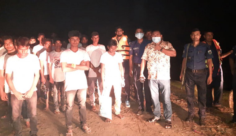 ৯৯৯-এ কল দিয়ে উদ্ধার হল যমুনা চরে আটকে পড়া অর্ধশত শিক্ষার্থী। সোমবার রাত ১২টার পর বঙ্গবন্ধু সেতু ও যমুনা নদীতে ঈদ আনন্দ ভ্রমণ করতে আসা এসব শিক্ষার্থীদের উদ্ধার করেছে পুলিশ। পুলিশ ও আটকে পড়া শিক্ষার্থীরা জানান, সোমবার সকাল সাড়ে ৮টার দিকে টাঙ্গাইলের নাগরপুর উপজেলার কামুটিয়া গ্রামের প্রায় ৫০ জন স্কুল-কলেজের শিক্ষার্থী মিলে ইঞ্জিনচালিত একটি শ্যালো নৌকা নিয়ে বঙ্গবন্ধু সেতু ও যমুনা নদীতে আনন্দ ভ্রমণে রওনা হন। দিনভর নদীতে নির্মল বিনোদনসহ দুপুরের খাবার গ্রহণ ও সেতু দর্শন করেন শিক্ষার্থীরা। পরে সন্ধ্যা সাড়ে ৭টার দিকে বাড়ি ফেরার পথে যমুনা নদীর মাঝে আকস্মিকভাবে নৌকার ইঞ্জিন বিকল হয়ে যায়। অনেক চেষ্টা করেও মেশিন চালু না হওয়ায় রাত ১০টার দিকে সিরাজগঞ্জের চৌহালী উপজেলাধীন এনায়েতপুরের যমুনা চরের ধুলিয়াবাড়ি এলাকায় আটকা পড়েন শিক্ষার্থীরা। পরে শিক্ষার্থীরা জাতীয় জরুরি সেবা নম্বর ৯৯৯-এ কল দিলে পুলিশ রাত ১২টার দিকে চরে গিয়ে আটকে পড়া শিক্ষার্থীদের উদ্ধার করে। এছাড়া পুলিশি নিরাপত্তায় শিক্ষার্থীদের রাতযাপন শেষে মঙ্গলবার সকালে পরিবারের সঙ্গে কথা বলে নিরাপদে তাদের বাড়ি পৌঁছে দেয়া হয়। এ ব্যাপারে এনায়েতপুর থানার ওসি মোল্লা মাসুদ পারভেজ জানান, আটকে পড়া শিক্ষার্থীরা জরুরি সেবা ৯৯৯-এ কল দিলে জেলা পুলিশ সুপারের নির্দেশে তাদের উদ্ধার করা হয়। তবে কারও কোনো ক্ষয়ক্ষতি হয়নি। সকালে নিরাপদে সবাইকে বাড়ি পৌঁছানোর ব্যবস্থা করা হয়েছে। সূত্রঃ যুগান্তর